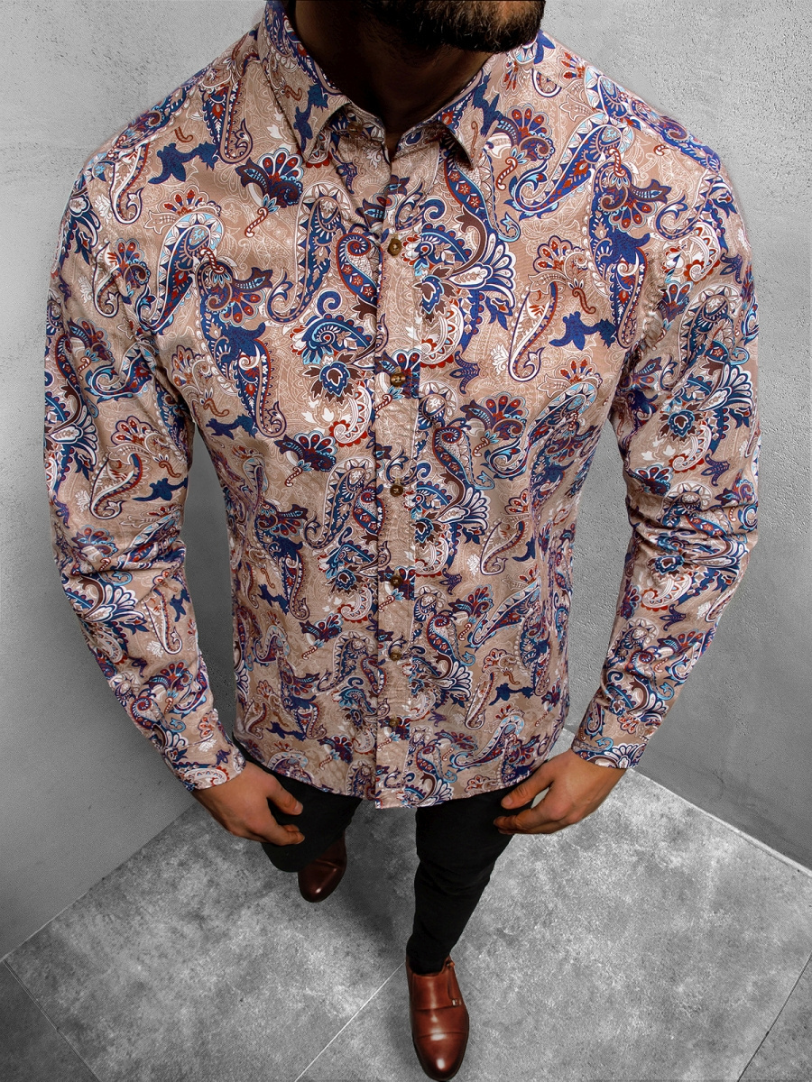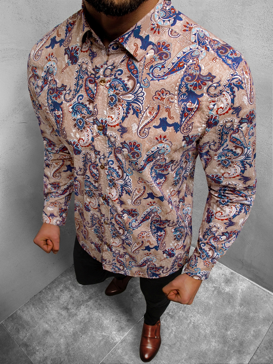 Koszula pochodzi z nowej kolekcji. Ma długi rękaw, zapięcie na guziki i kołnierzyk typu kent. Koszulę zdobi wzór paisley. Ma ona fason typu slim fit, czyli dopasowany do sylwetki. Koszula została wykonana z wysokiej jakości bawełny z domieszką elastanu. Sprawia to, że ładnie układa się na ciele, jest wygodna w noszeniu, miła w dotyku i odporna na uszkodzenia oraz zagniecenia.