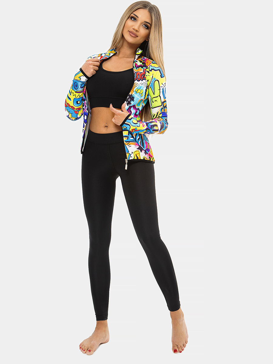 - Rozpinaną bluzę z kieszeniami po bokach i wzorzystym nadrukiem Legginsy