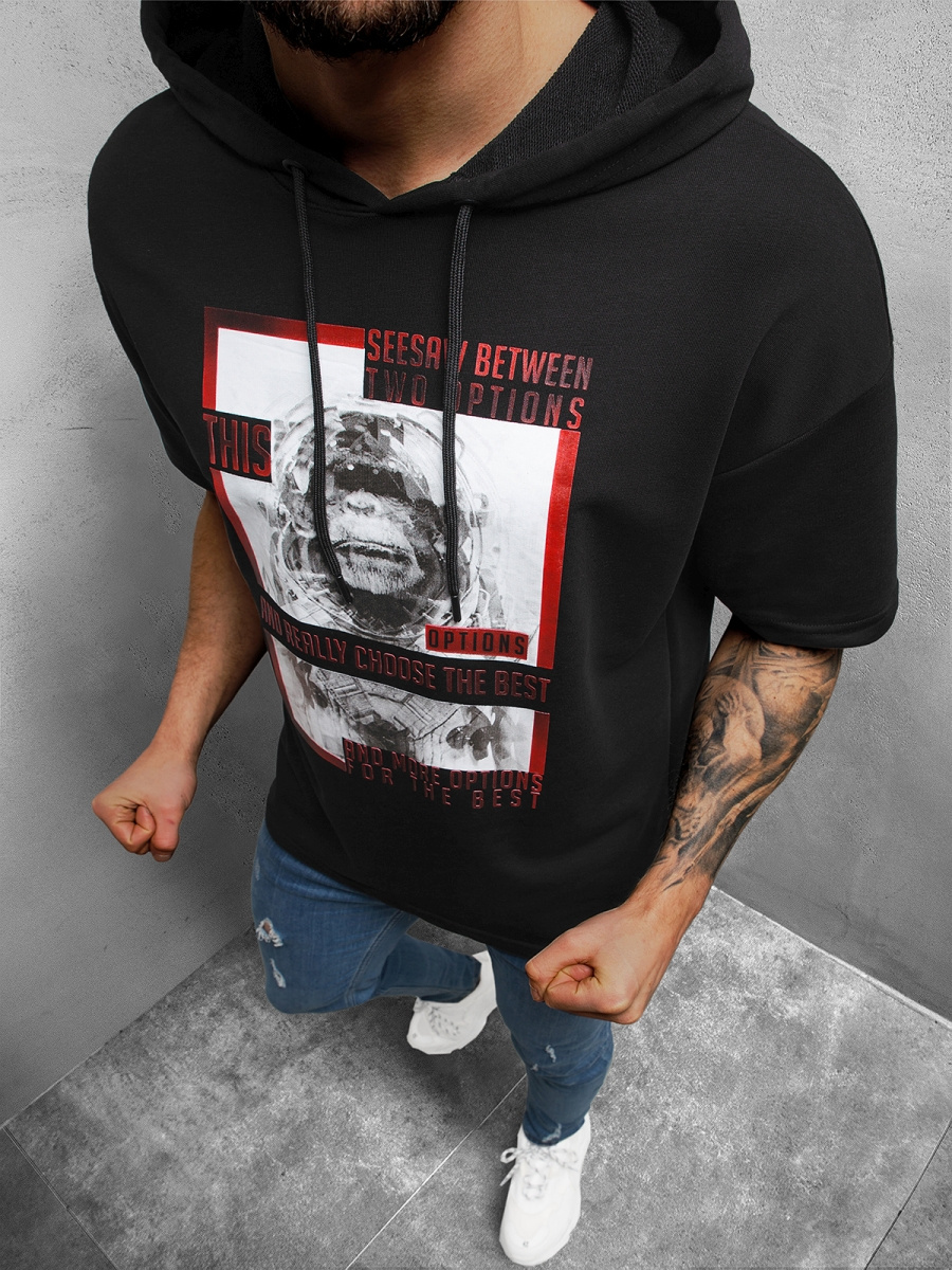 Bluza pochodzi z najnowszej kolekcji. Jest wkładana przez głowę i posiada krótki rękaw. Bluza ma kaptur, który skutecznie sprawdza się w chłodne, wietrzne dni, chroniąc przed zimnem. Na przodzie znajduje się oryginalny, przykuwający wzrok nadruk. Bluza została wykonana z połączenia bawełny oraz poliestru, dzięki czemu ładnie dopasowuje się do sylwetki, jest wygodna w noszeniu i przyjemna w dotyku.