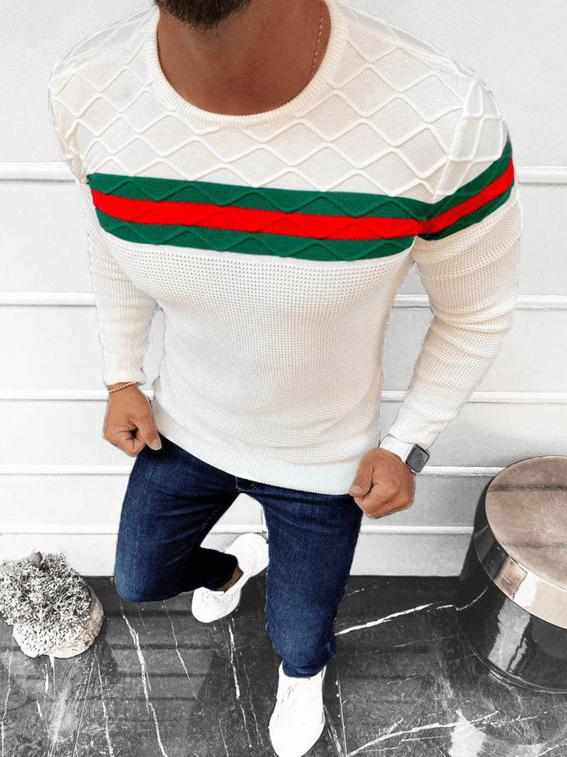 Taki sweter to doskonałe rozwiązanie na nieco chłodniejsze dni. Jest on bardzo uniwersalny i nadaje się na różne okazje. Można go założyć do szkoły, na uczelnię, spotkanie ze znajomymi, randkę, spacer czy zakupy. Sweter będzie się znakomicie komponował z innymi męskimi ubraniami z asortymentu naszego sklepu internetowego. Zestawić można go na przykład ze skórzaną kurtką typu ramoneska, oraz jeansami. Równie dobrze będzie wyglądał z bomberką oraz joggerami.