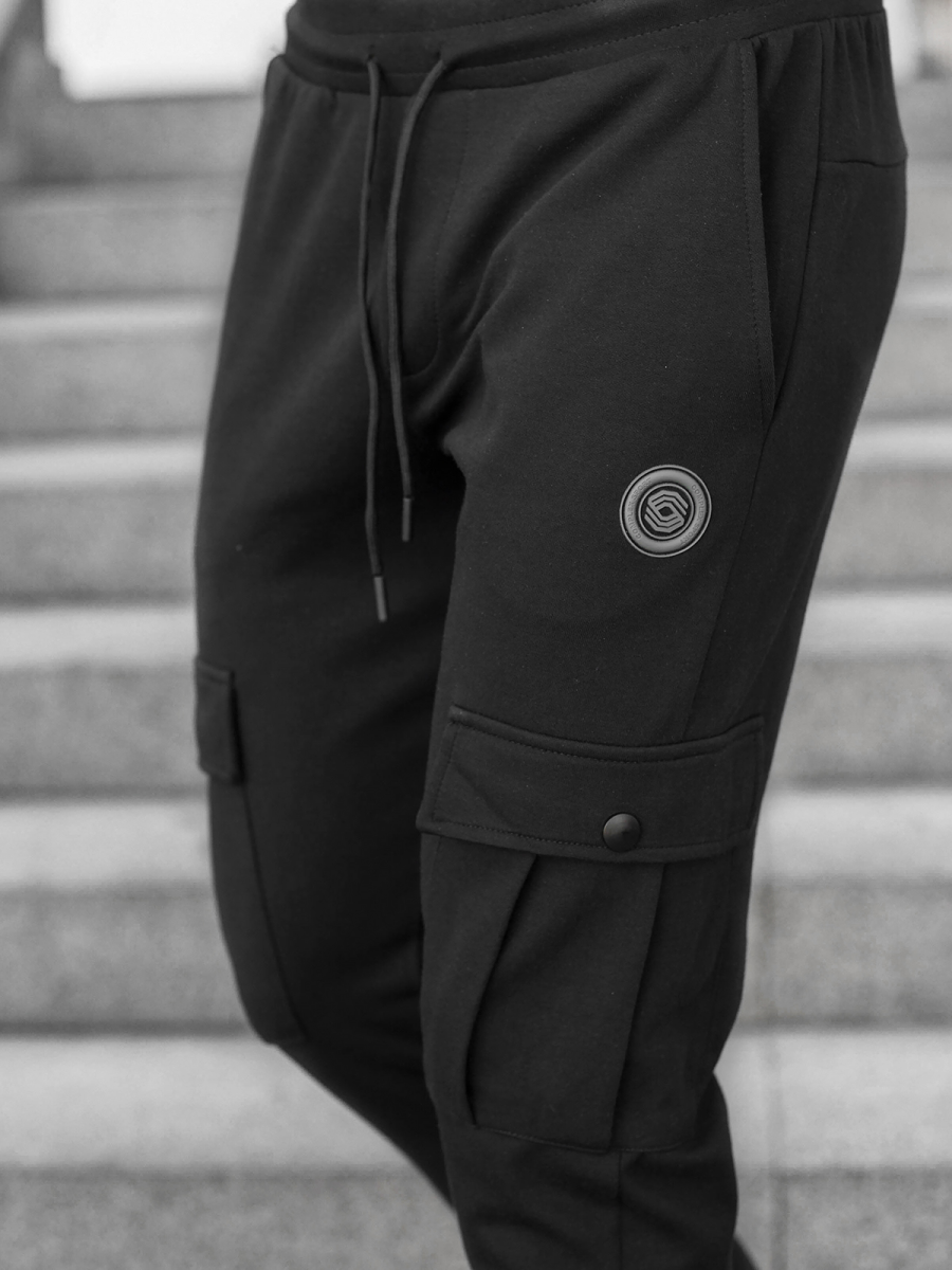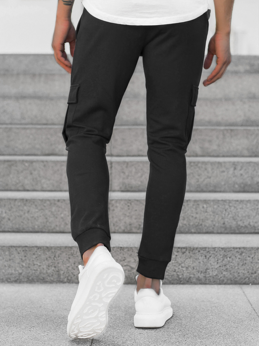 Spodnie zostały wykonane z połączenia poliestru oraz bawełny. Sprawia to, że są wygodne w noszeniu, przyjemne w dotyku, nie rozciągają się, nie gniotą i ładnie dopasowują się do sylwetki. Ich pas oraz nogawki zostały wykończone ściągaczami, które nadają całości sportowego charakteru. Po bokach oraz z przodu znajdują się praktyczne kieszenie, do których schować można portfel czy klucze.