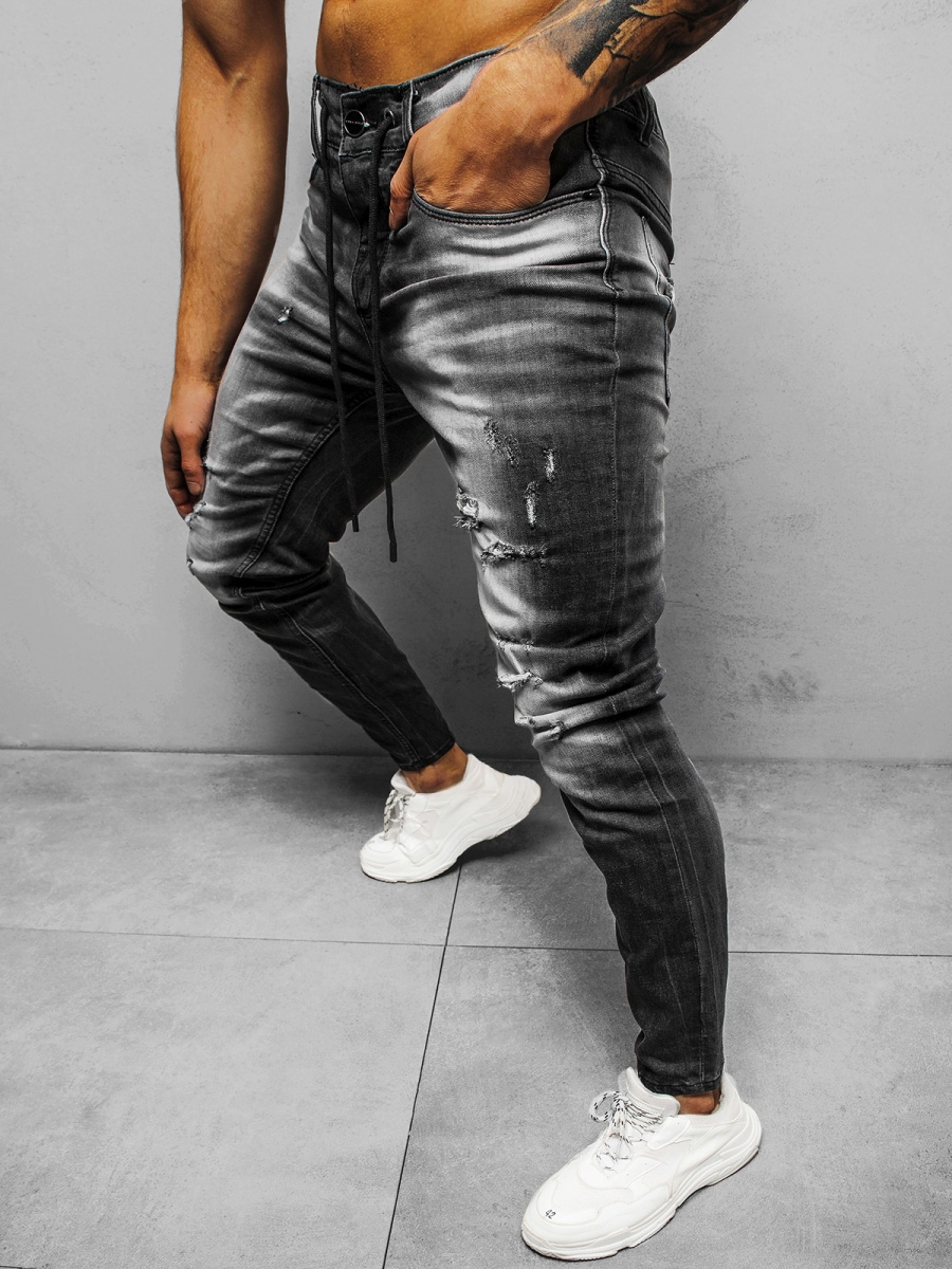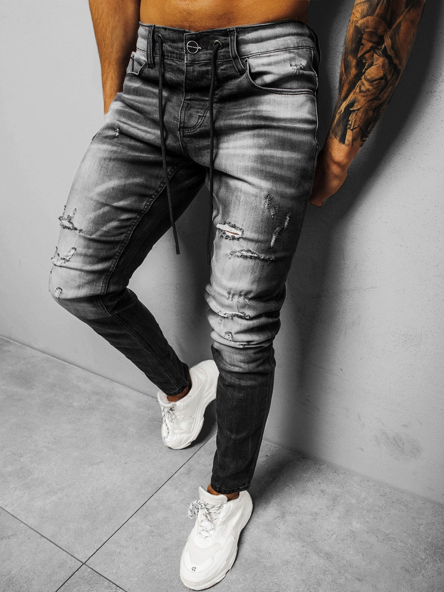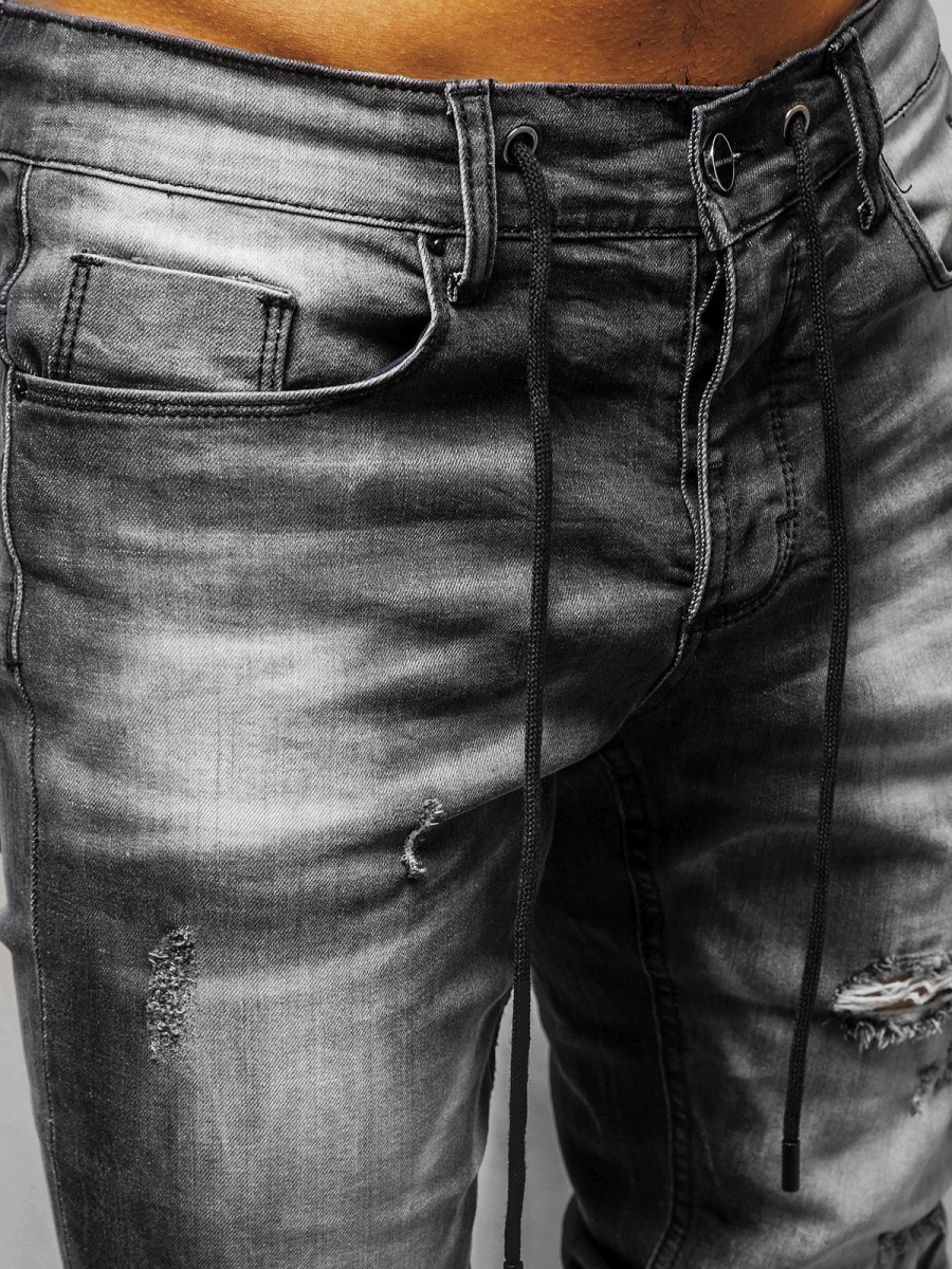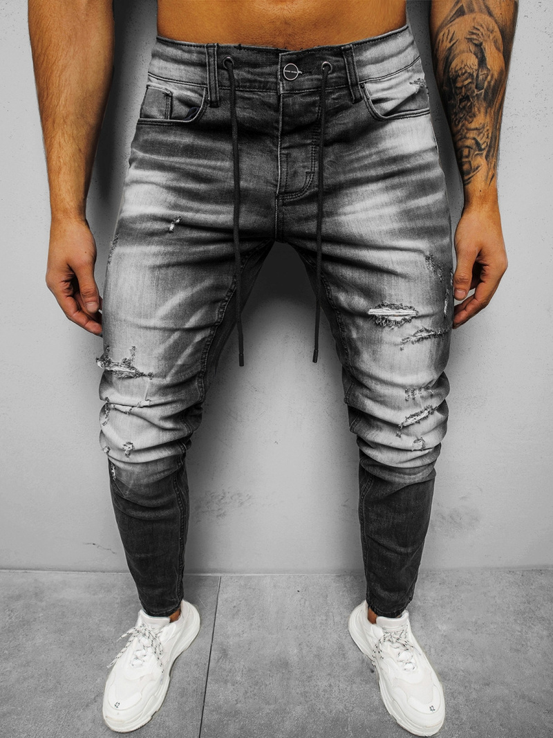 Spodnie mają fason typu slim fit, którego cechą charakterystyczną są wąskie nogawki. Znajdujące się na nich przetarcia nadają im oryginalnego wyglądu. Z przodu oraz z tyłu umieszczono kieszenie, które z łatwością pomieszczą drobiazgi, takie jak klucze, portfel czy telefon. Jeansy zostały wykonane z połączenia bawełny, poliestru oraz elastanu. Dzięki temu ładnie dopasowują się do ciała, są wygodne w noszeniu, miłe w dotyku i odporne na uszkodzenia oraz zagniecenia.