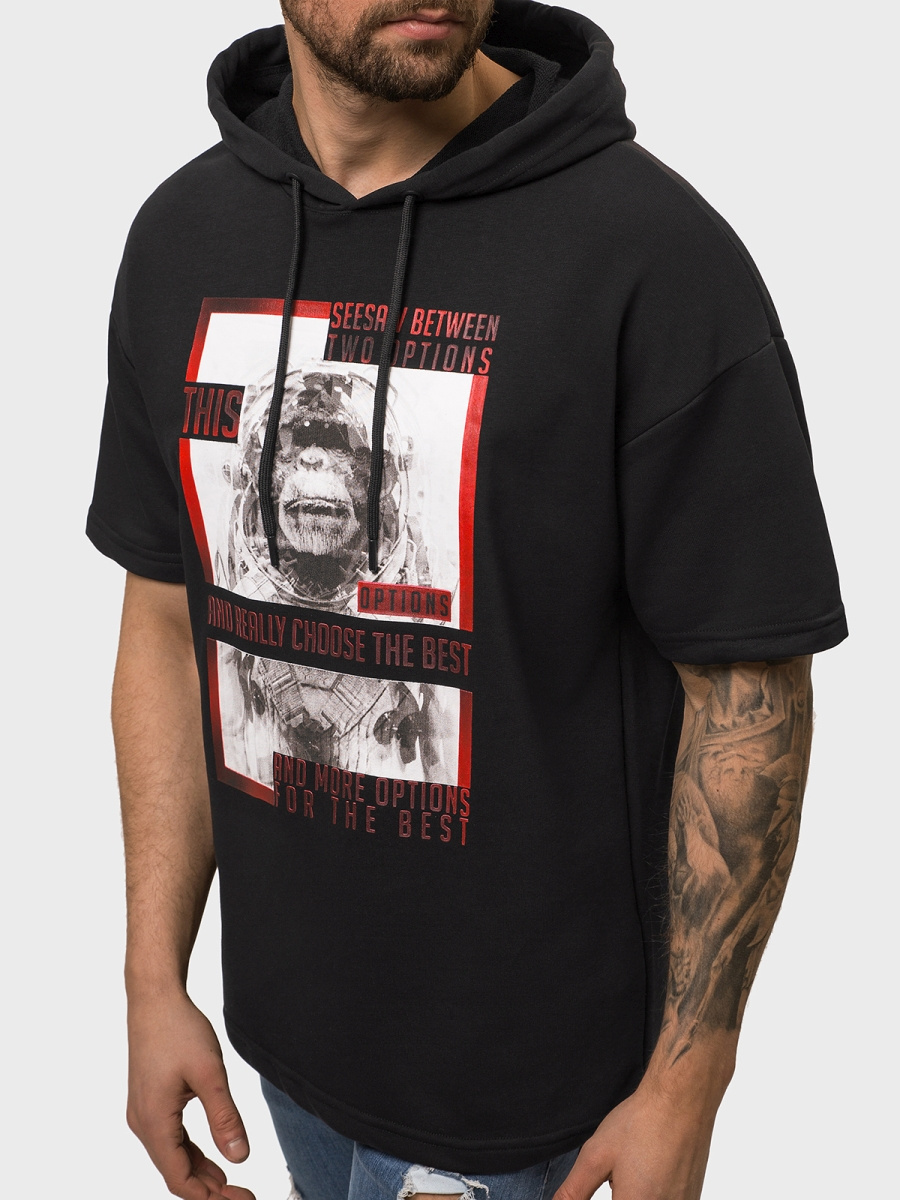 Bluza pochodzi z najnowszej kolekcji. Jest wkładana przez głowę i posiada krótki rękaw. Bluza ma kaptur, który skutecznie sprawdza się w chłodne, wietrzne dni, chroniąc przed zimnem. Na przodzie znajduje się oryginalny, przykuwający wzrok nadruk. Bluza została wykonana z połączenia bawełny oraz poliestru, dzięki czemu ładnie dopasowuje się do sylwetki, jest wygodna w noszeniu i przyjemna w dotyku.
