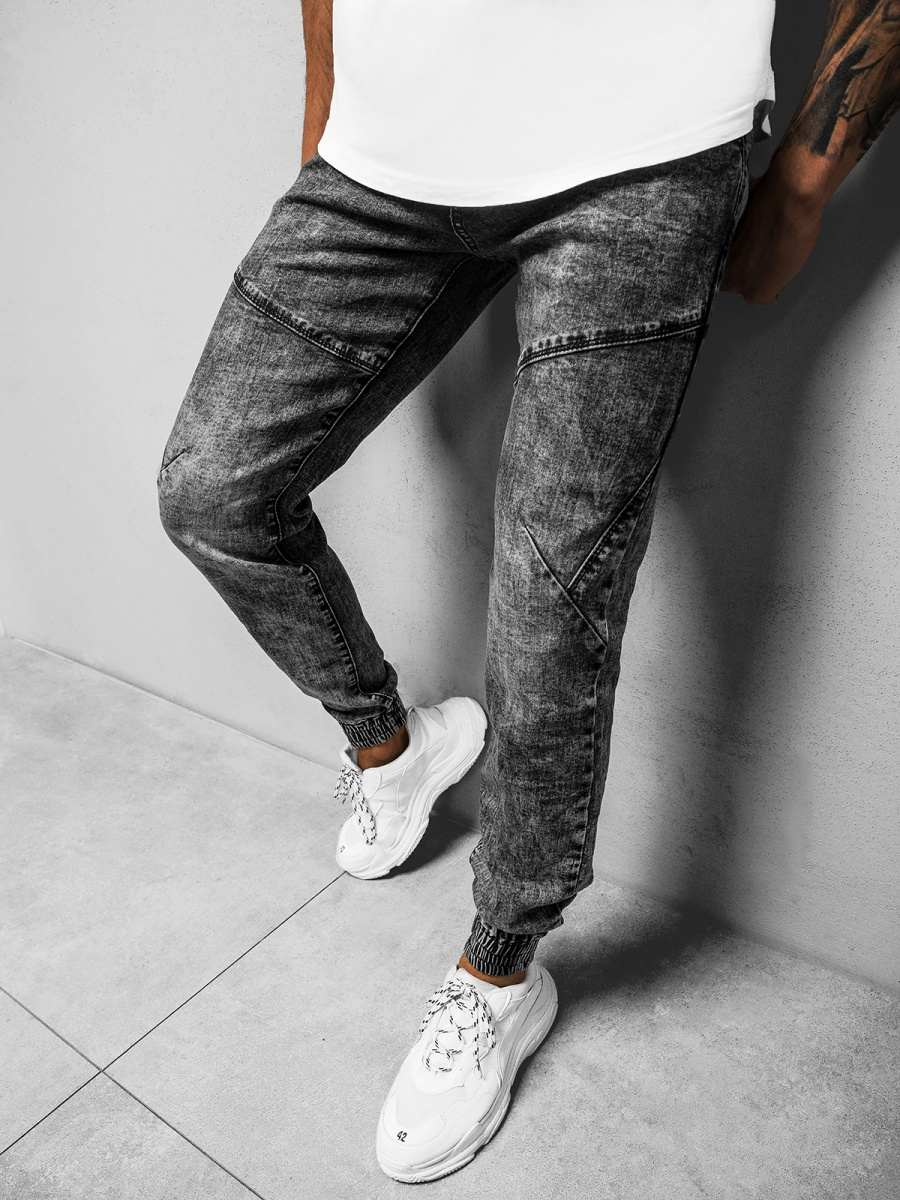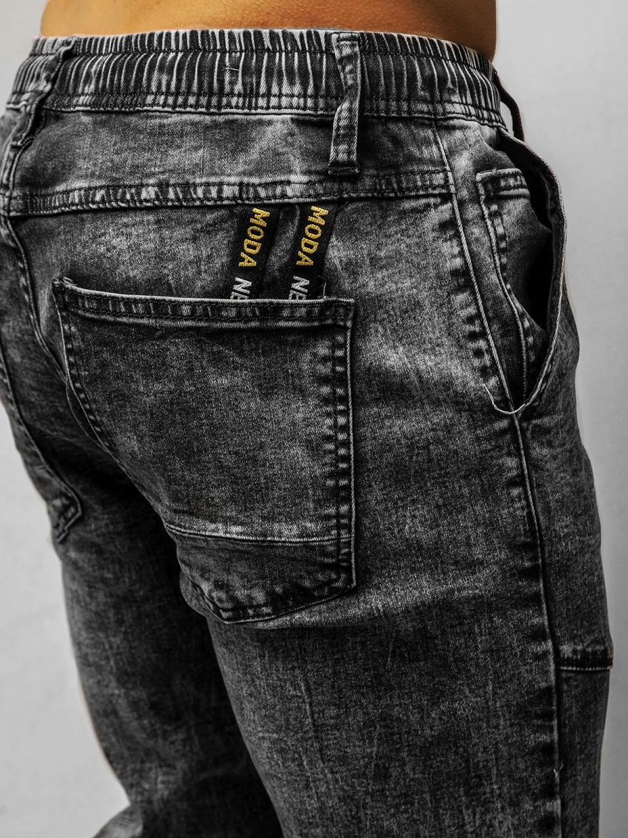 Spodnie jeansowe joggery męskie grafitowe OZONEE DR/TF124