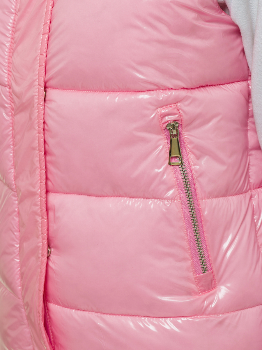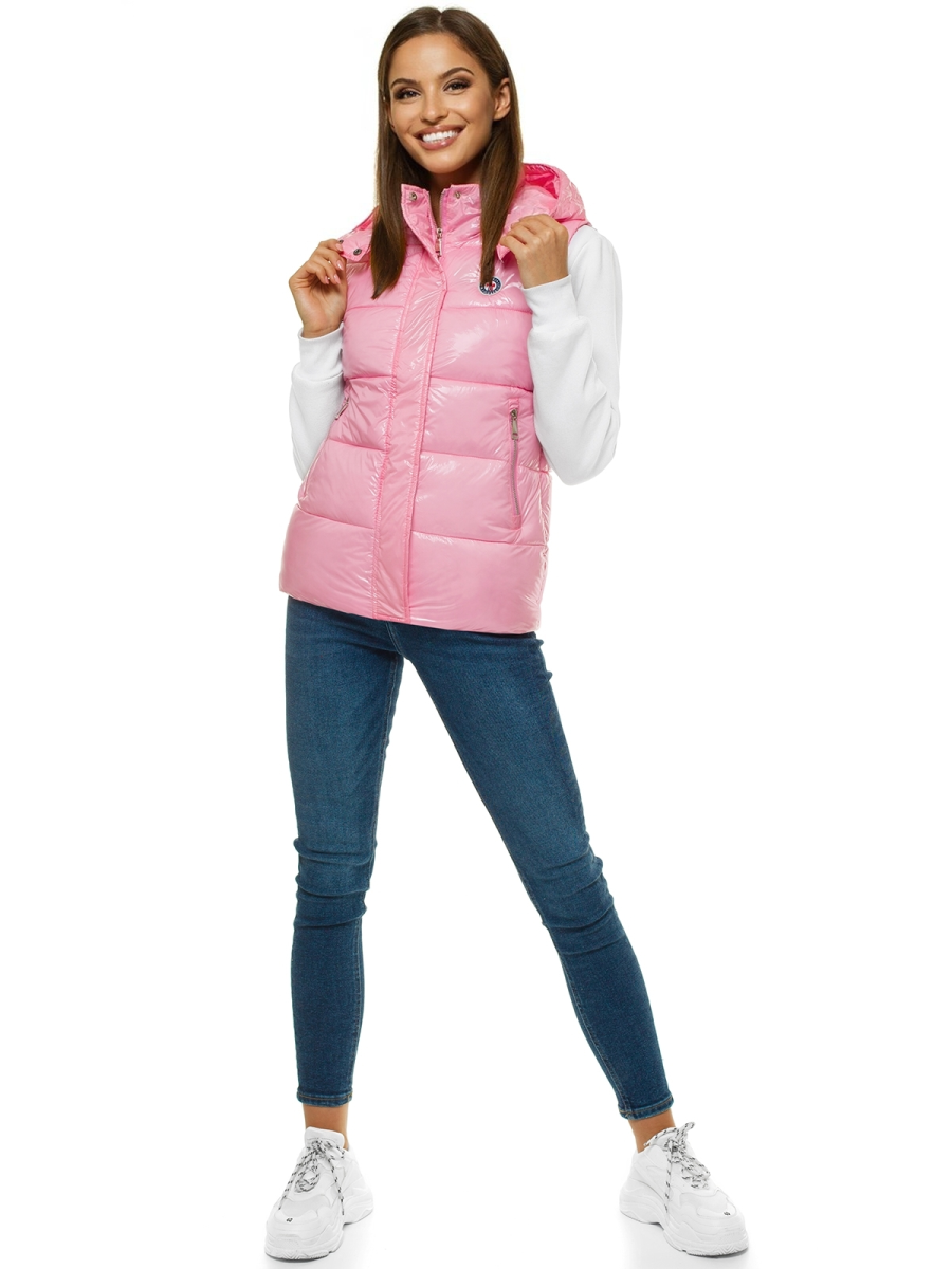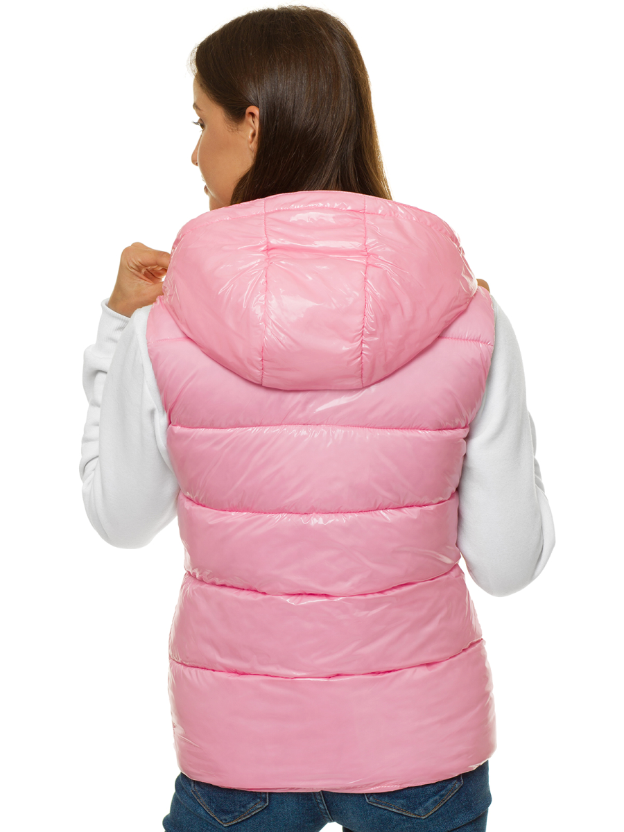 Kamizelka damska pikowana z kapturem jasnoróżowa OZONEE O/SW025/21
