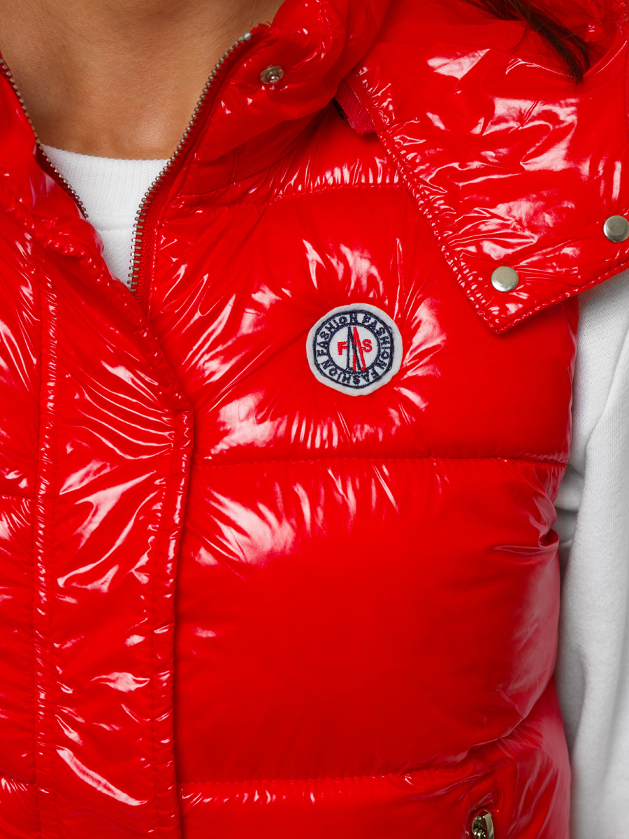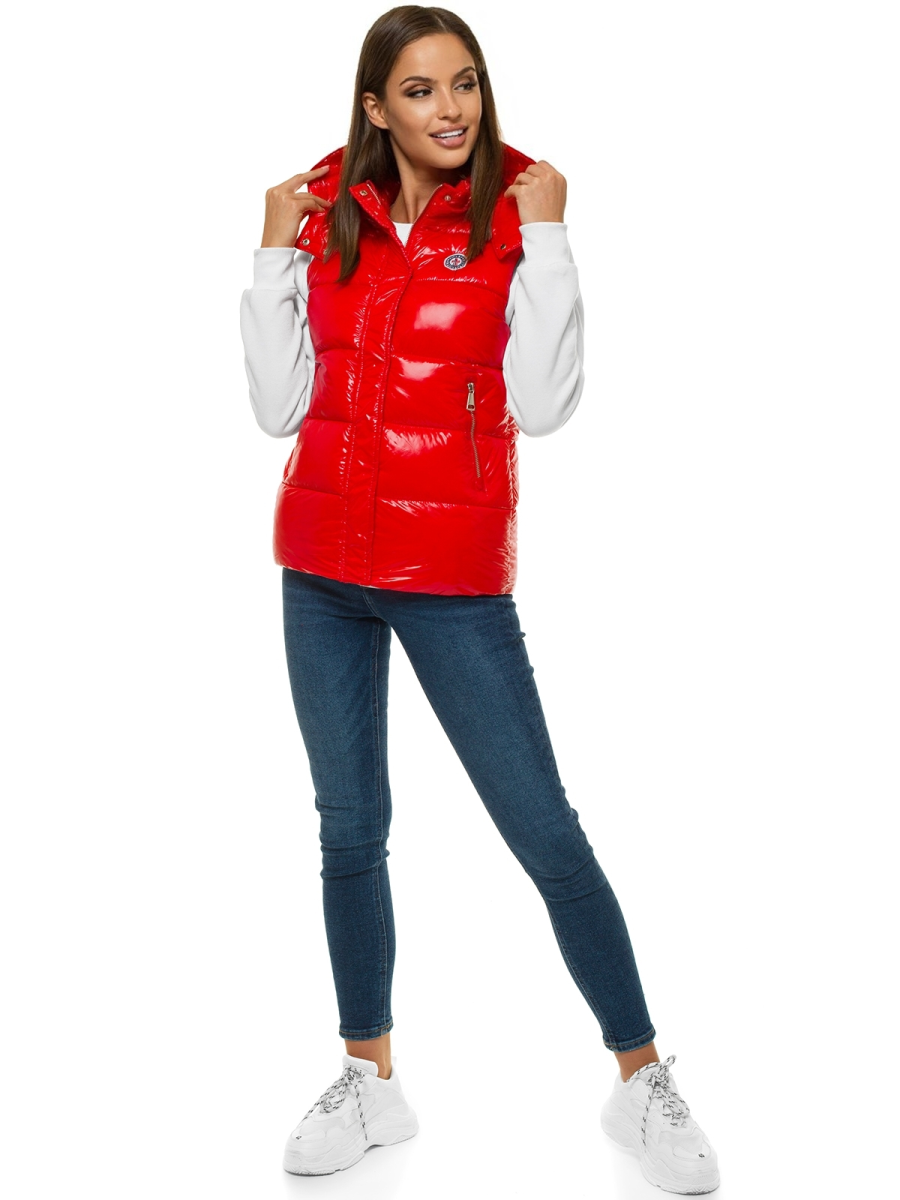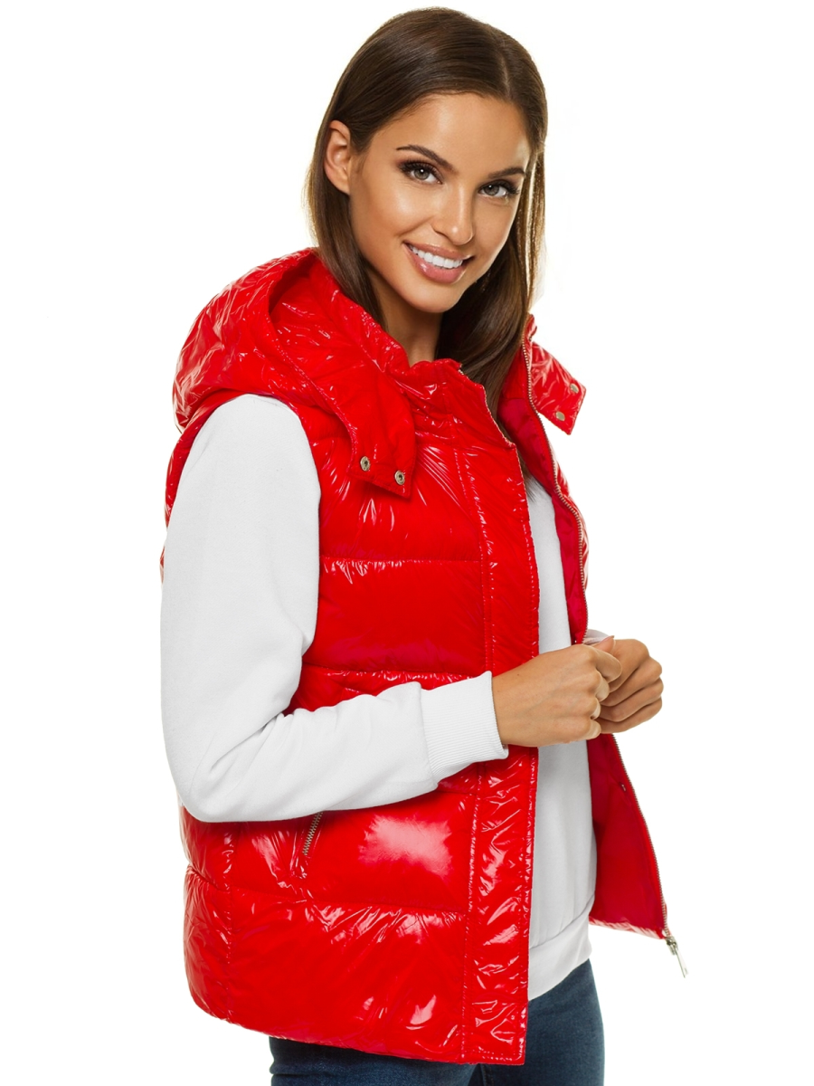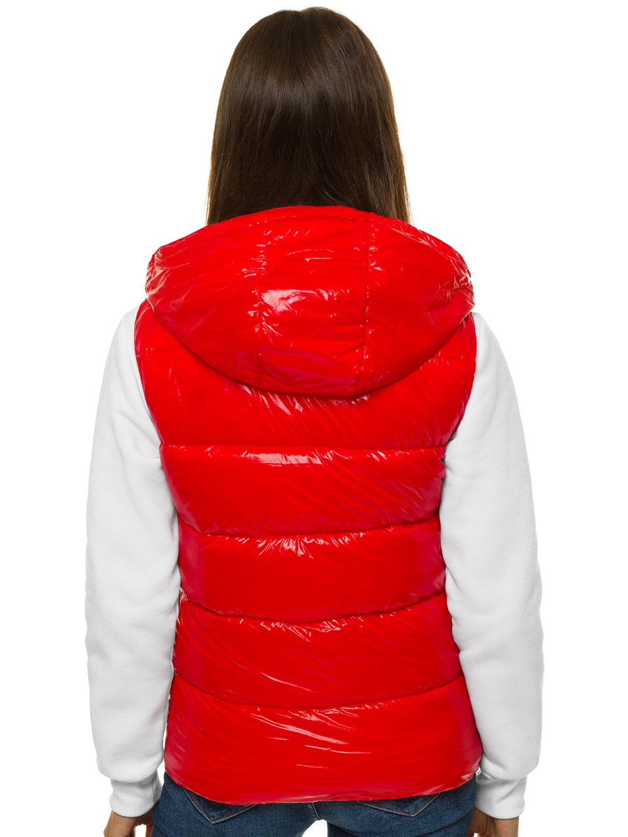 Kamizelka damska pikowana z kapturem czerwona OZONEE O/SW025/4