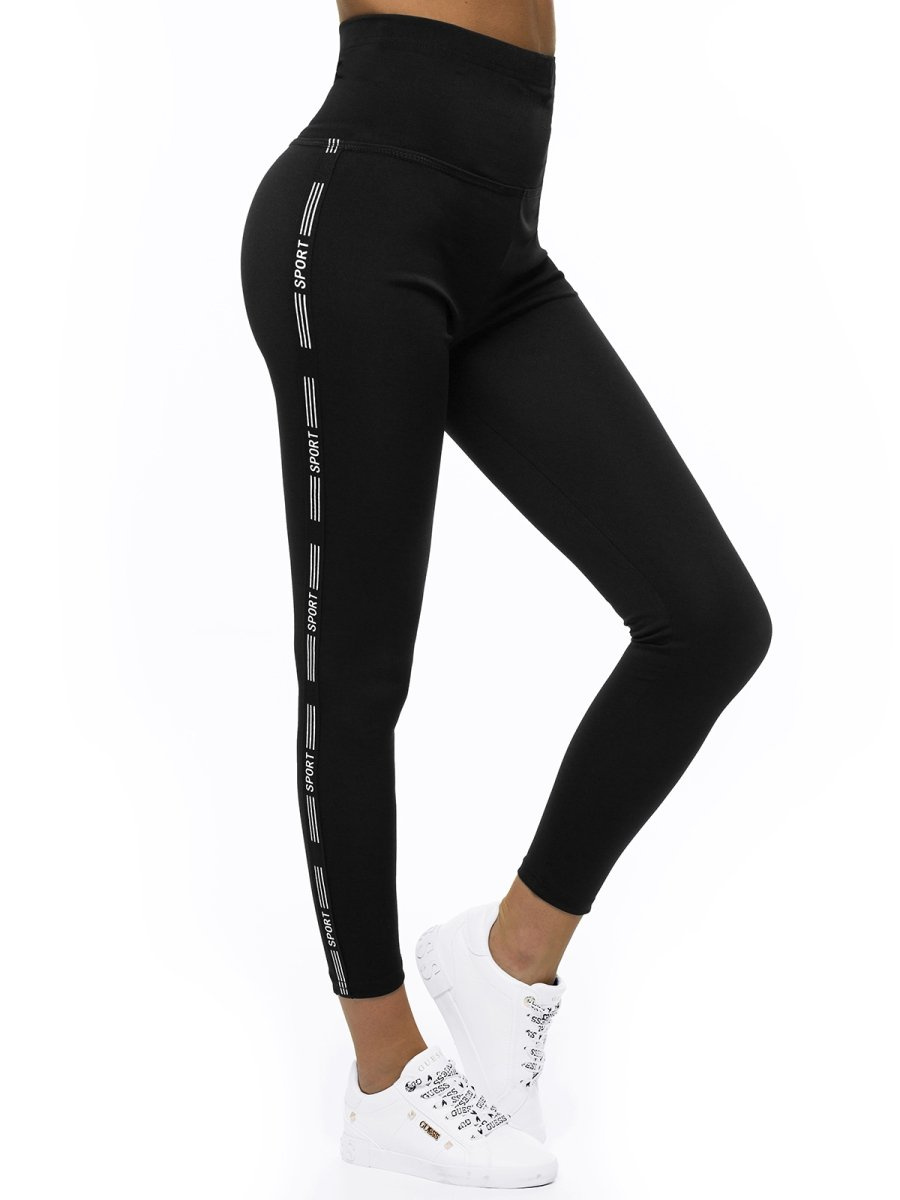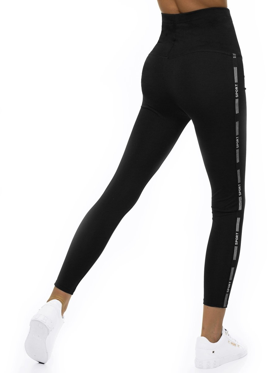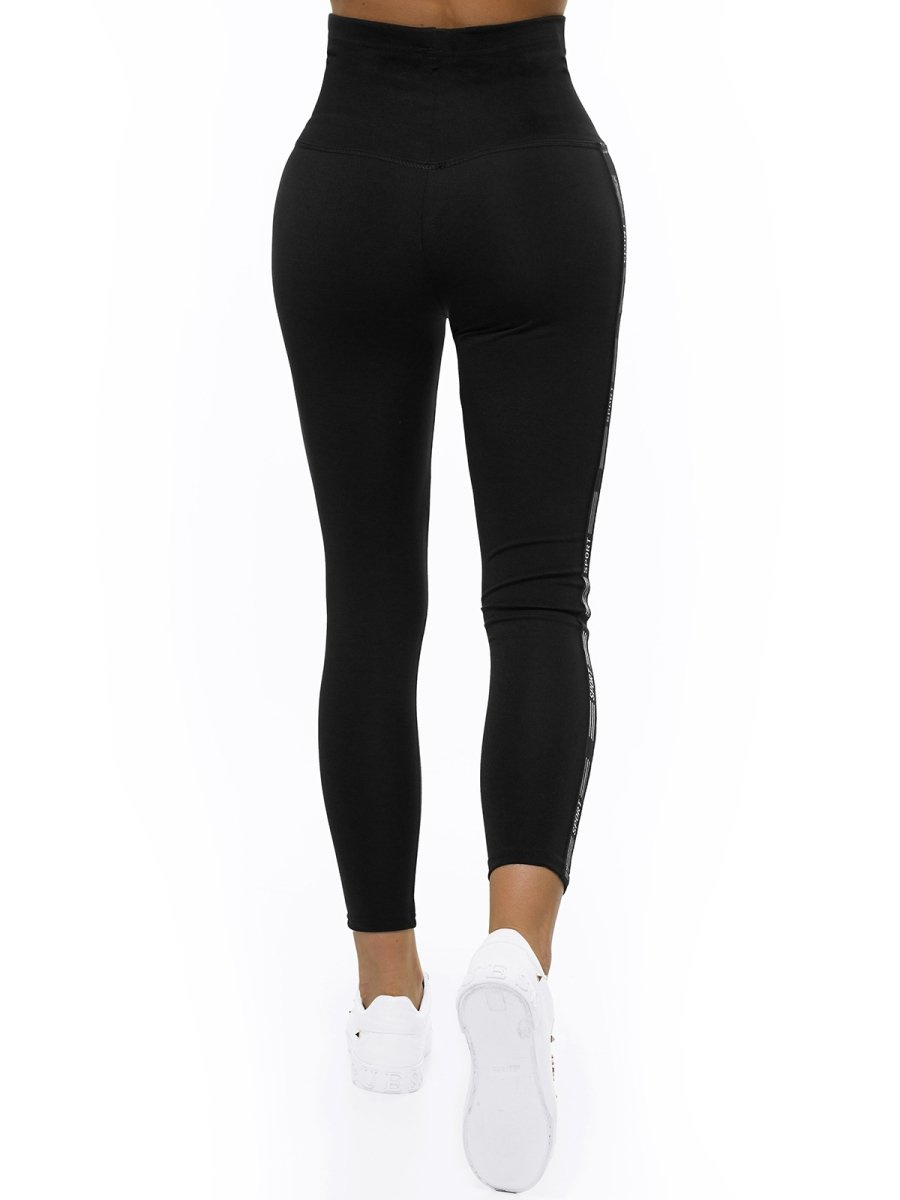 Legginsy mają praktyczny pas ze ściągaczem, który gwarantuje należyty komfort noszenia. Wysoki stan skutecznie maskuje niedoskonałości sylwetki, takie jak wystający brzuszek czy boczki. Znajdujące się po bokach paski i napisy nadają legginsom oryginalnego wyglądu. Zostały one wykonane z połączenia wysokiej jakości poliestru oraz spandexu. Sprawia to, że ładnie dopasowują się do sylwetki, nie krępują ruchów i szybko schną.