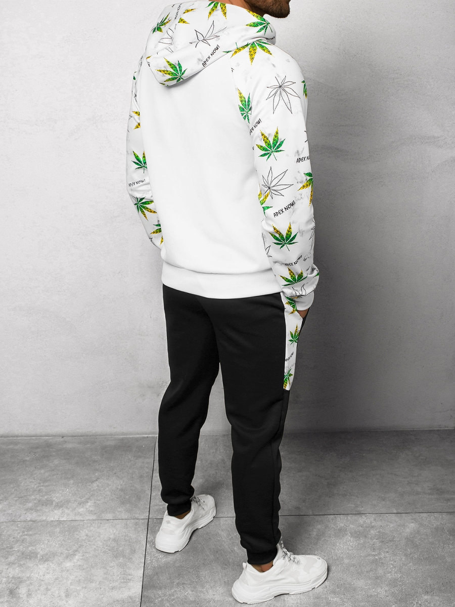 W skład kompletu męskiego wchodzą 2 elementy. Są to spodnie z kieszeniami oraz rozpinana bluza z kapturem oraz kieszeniami na zamek błyskawiczny. Zdobiący je nadruk i kontrastowe wstawki nadają im oryginalnego wyglądu. Zestaw został wykonany z połączenia bawełny oraz poliestru, dzięki czemu jest wygodny w noszeniu, przyjemny w dotyku i ładnie dopasowuje się do sylwetki.