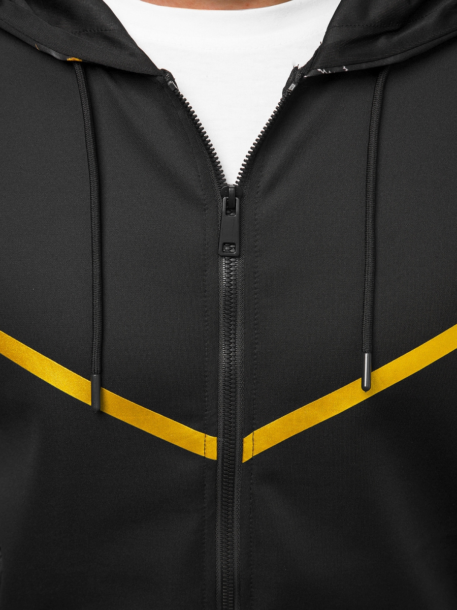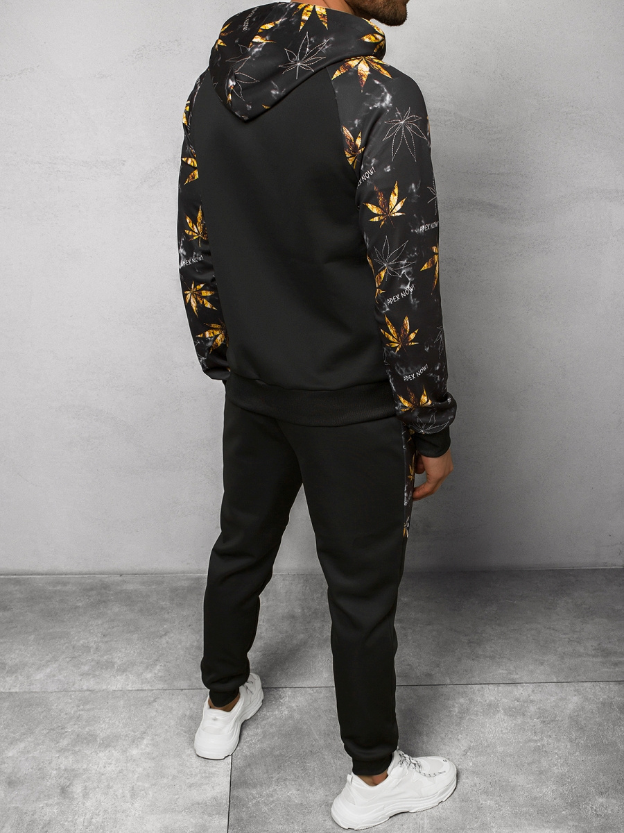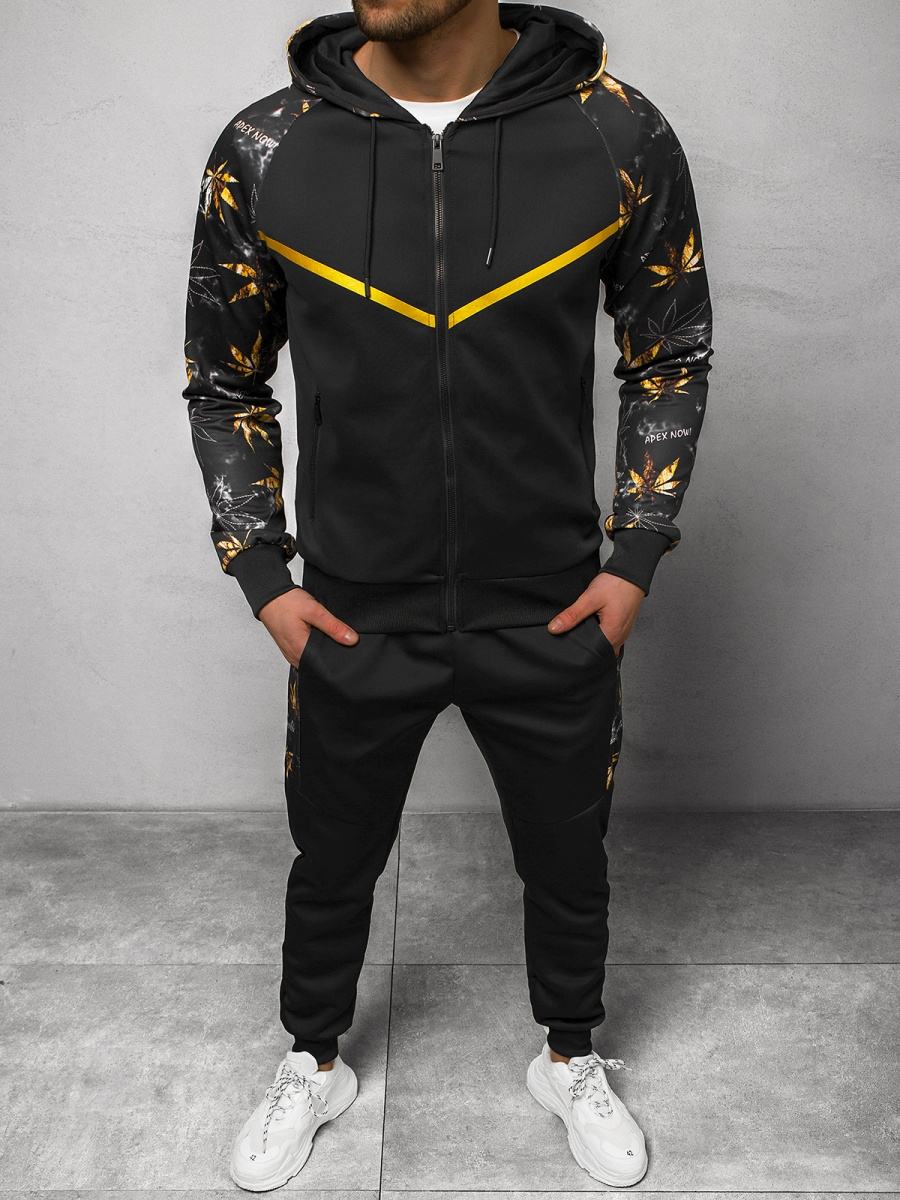 W skład kompletu męskiego wchodzą 2 elementy. Są to spodnie z kieszeniami oraz rozpinana bluza z kapturem oraz kieszeniami na zamek błyskawiczny. Zdobiący je nadruk i kontrastowe wstawki nadają im oryginalnego wyglądu. Zestaw został wykonany z połączenia bawełny oraz poliestru, dzięki czemu jest wygodny w noszeniu, przyjemny w dotyku i ładnie dopasowuje się do sylwetki.