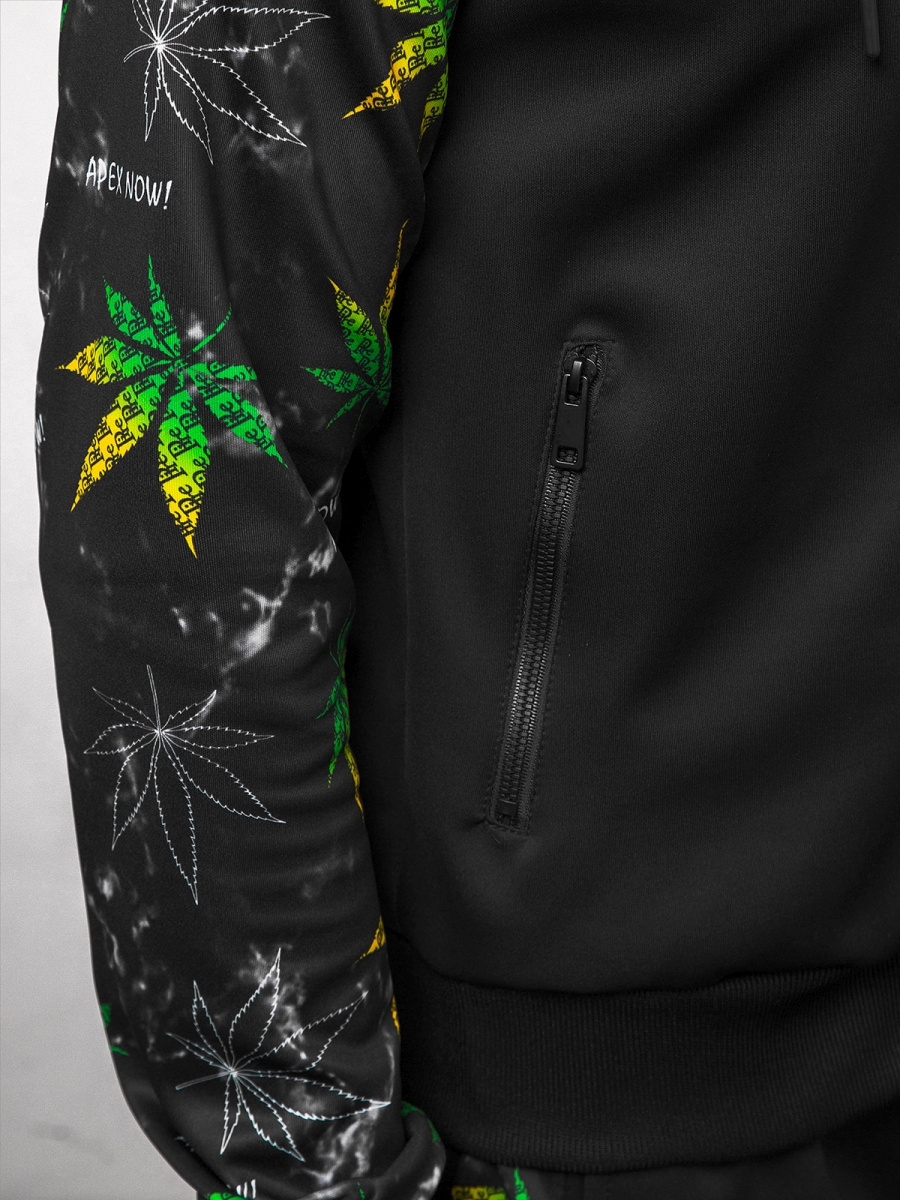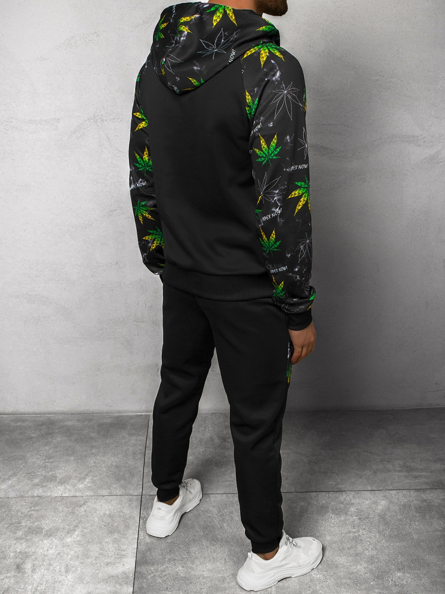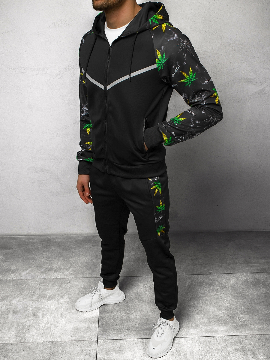 W skład kompletu męskiego wchodzą 2 elementy. Są to spodnie z kieszeniami oraz rozpinana bluza z kapturem oraz kieszeniami na zamek błyskawiczny. Zdobiący je nadruk i kontrastowe wstawki nadają im oryginalnego wyglądu. Zestaw został wykonany z połączenia bawełny oraz poliestru, dzięki czemu jest wygodny w noszeniu, przyjemny w dotyku i ładnie dopasowuje się do sylwetki.