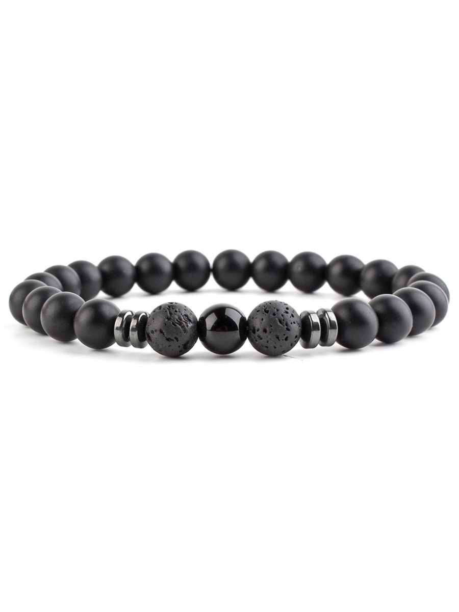 - KORALIKI O CZARNYM KOLORZE ZE SKAŁY WULKANICZNEJ Z METALOWYMI WSTAWKAMI