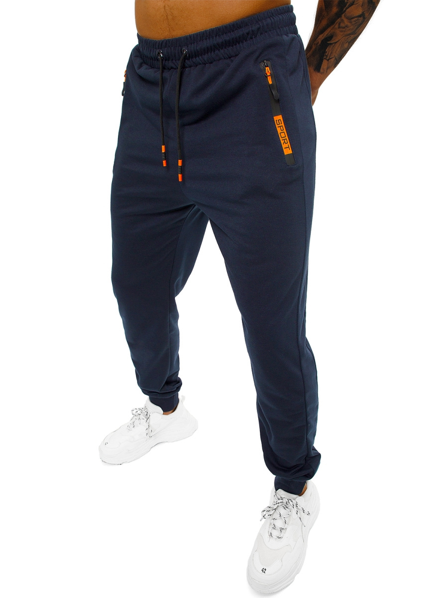 Spodnie pochodzą z najnowszej kolekcji. Mają fason typu jogger. W pasie oraz przy nogawkach znajdują się ściągacze nadające im sportowego charakteru. Po bokach umieszczono praktyczne kieszenie na zamek błyskawiczny, do których można schować klucze, portfel czy telefon. Dzięki kontrastowym lampasom po bokach, joggery prezentują się bardzo oryginalnie. Zostały one wykonane z połączenia wysokiej jakości bawełny oraz poliestru, co sprawia, że są wygodne w noszeniu i przyjemne w dotyku.