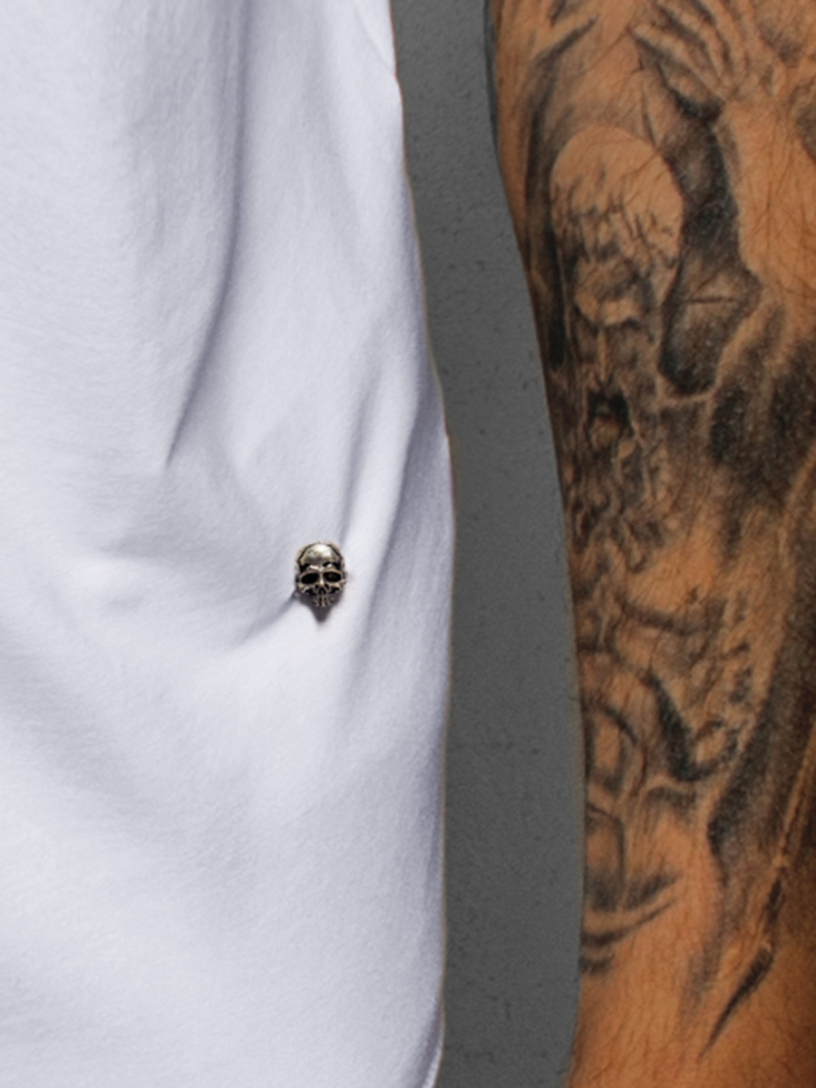 - OZDOBNĄ METALOWĄ CZASZKĘ