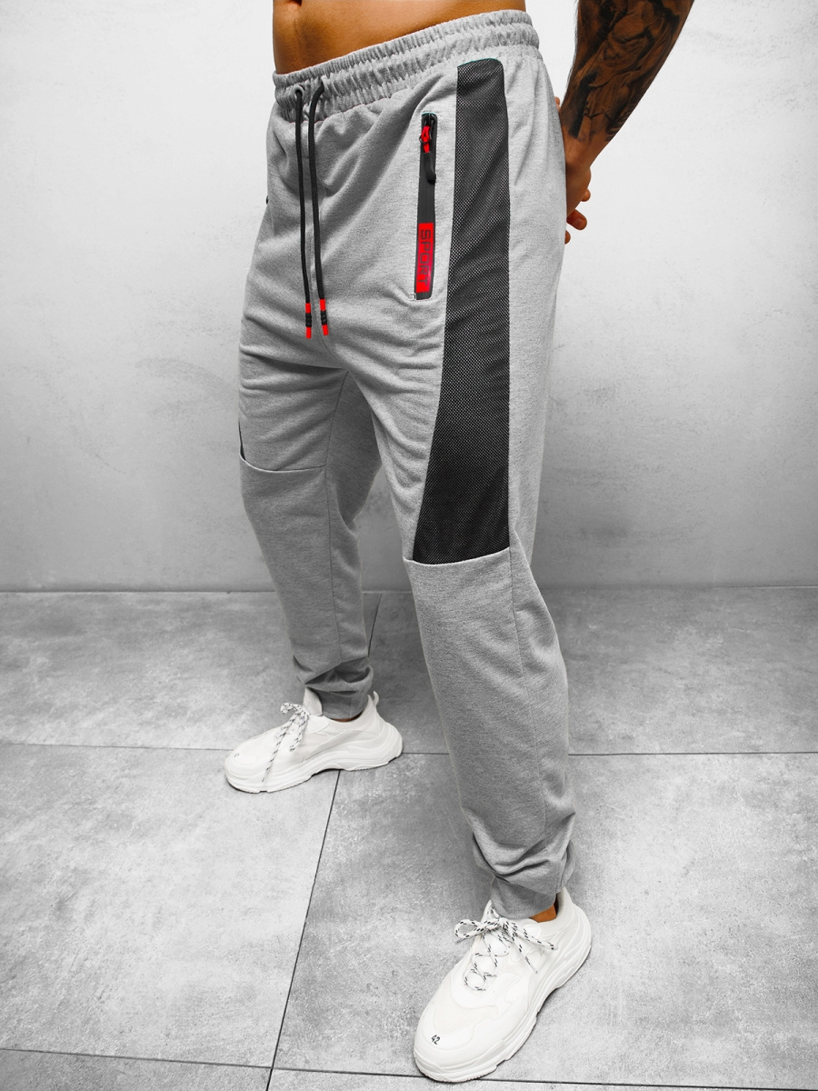 Spodnie pochodzą z najnowszej kolekcji. Mają fason typu jogger, którego cechą charakterystyczną są ściągacze w pasie i przy nogawkach. Po bokach spodni znajdują się kieszenie na zamek błyskawiczny, do których można schować drobiazgi, takie jak klucze, portfel czy telefon. Kontrastowe łączenia materiału nadają joggerom oryginalnego wyglądu. Spodnie zostały wykonane z połączenia bawełny oraz poliestru. Sprawia to, że są wygodne w noszeniu, przyjemne w dotyku i ładnie dopasowują się do sylwetki.