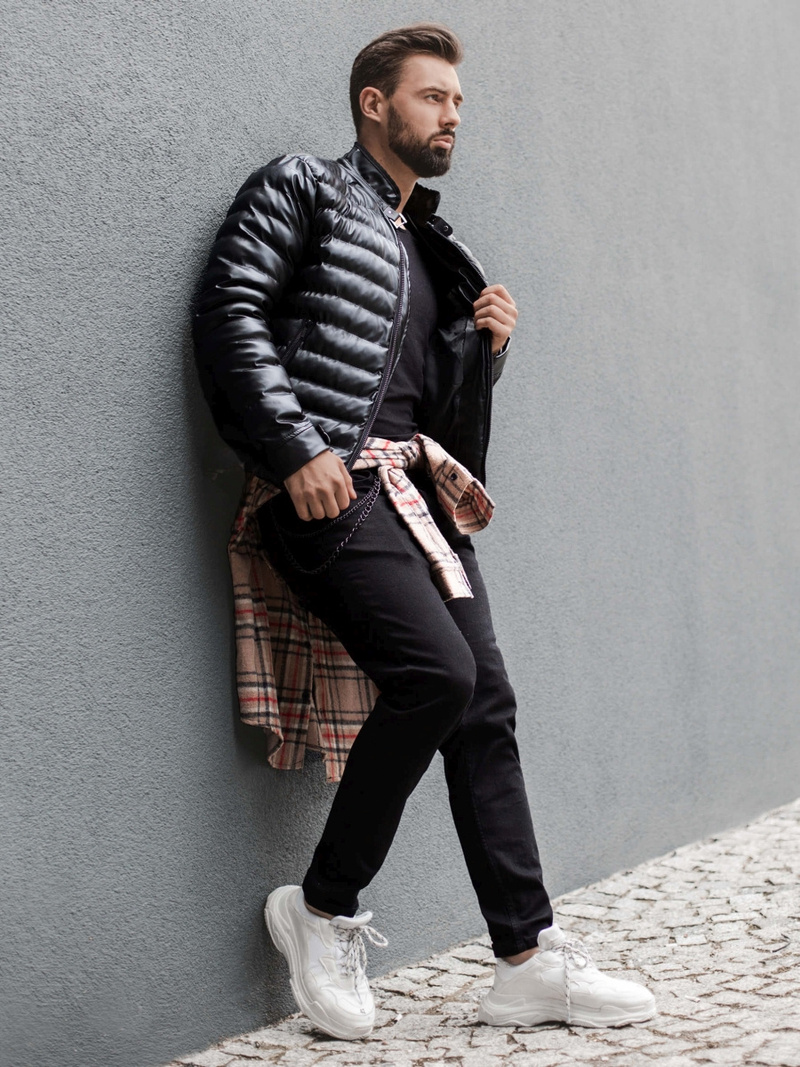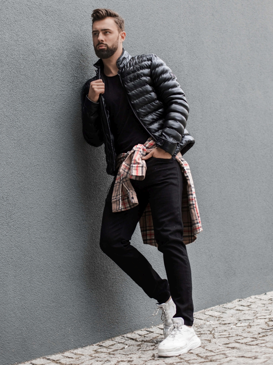 - KOSZULA W KRATĘ ORAZ JEANSY MĘSKIE TYPU RURKI. KURTKA