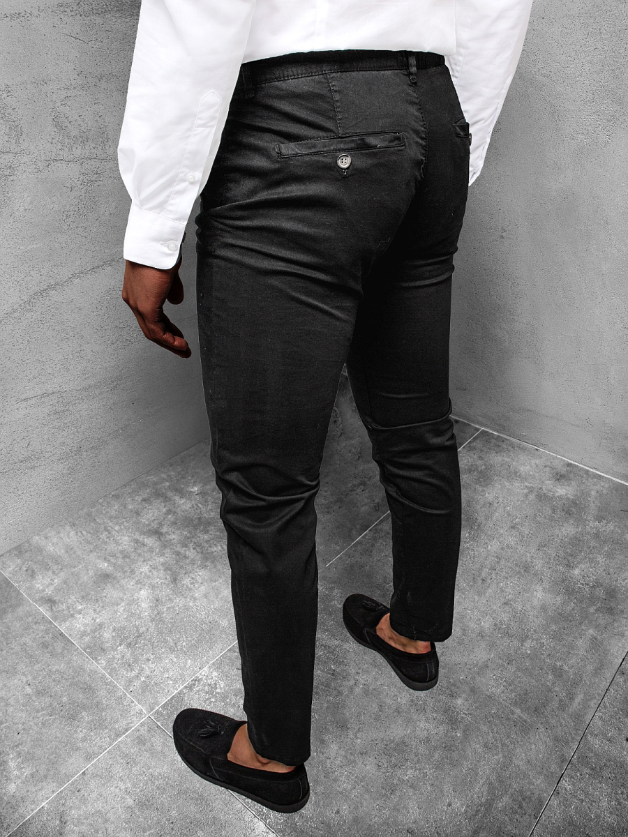 Spodnie zostały wykonane z wysokiej jakości bawełny z domieszką elastanu. Sprawia to, że ładnie dopasowują się do sylwetki, są wygodne w noszeniu, miłe w dotyku, nie rozciągają się i nie gniotą. Spodnie mają kieszenie z przodu i z tyłu na guzik, do których można schować klucze czy telefon.