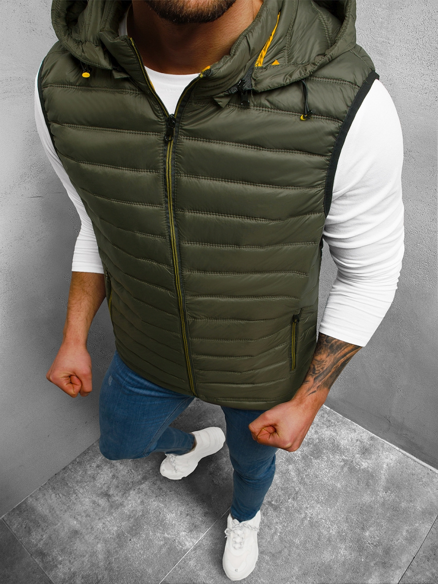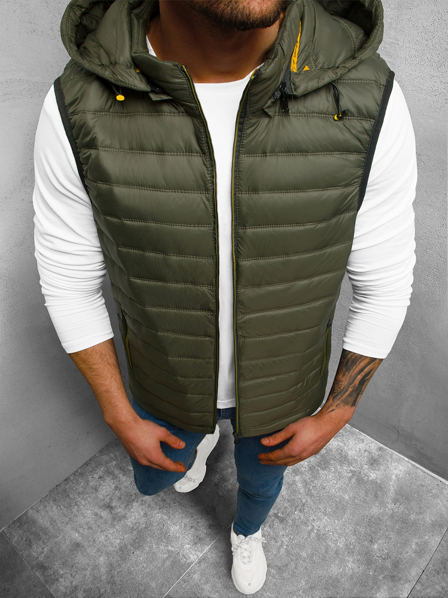 Kamizelka pochodzi z nowej kolekcji. Jest zapinana na zamek błyskawiczny. Kamizelka ma odpinany kaptur skutecznie chroniący przed opadami deszczu i chłodnymi podmuchami wiatru. Po bokach znajdują się praktyczne kieszenie na zamek, do których można schować klucze, telefon czy portfel. Pokrywające kamizelkę pikowania nadają jej oryginalnego wyglądu. Została ona wykonana z nylonu, a jej podszewka — z poliestru. Sprawia to, że kamizelka ładnie dopasowuje się do sylwetki i szybko schnie.