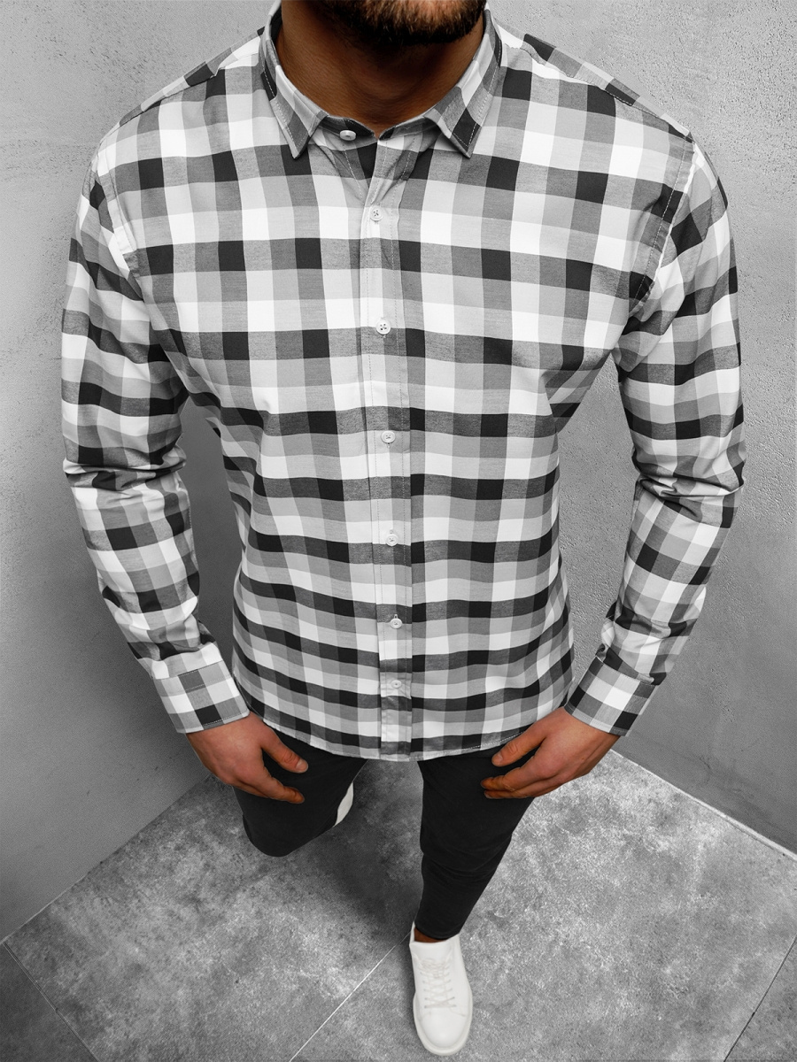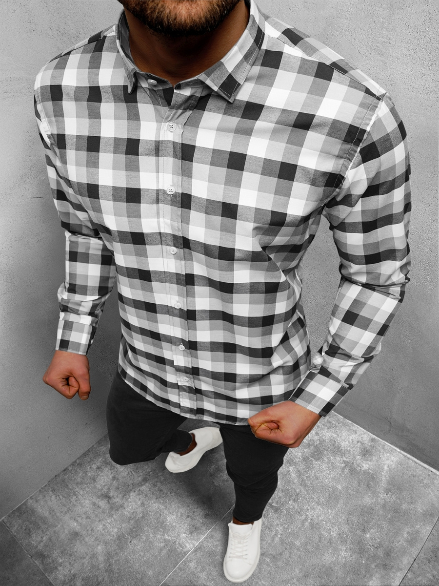 Koszula męska w kratę czarno-biała OZONEE O/0822