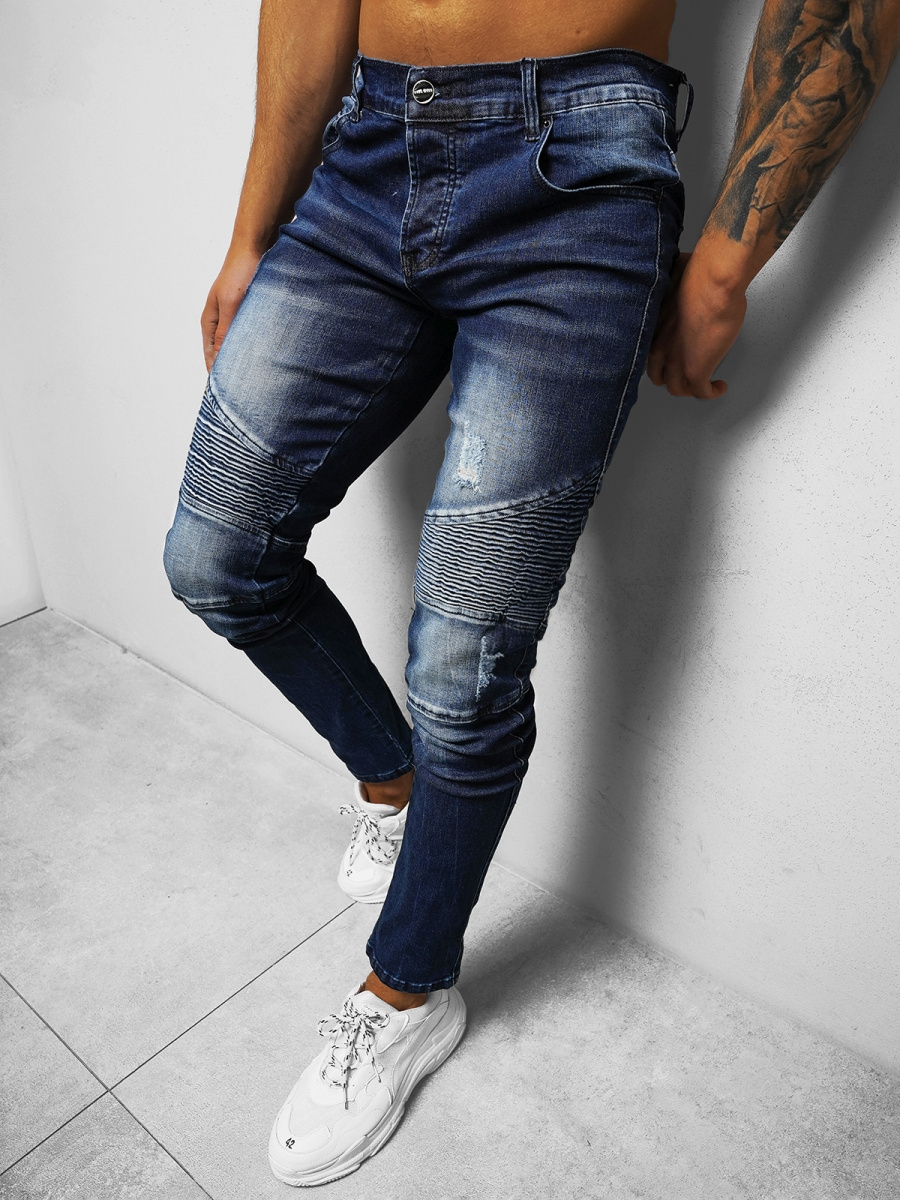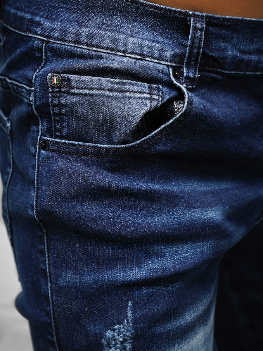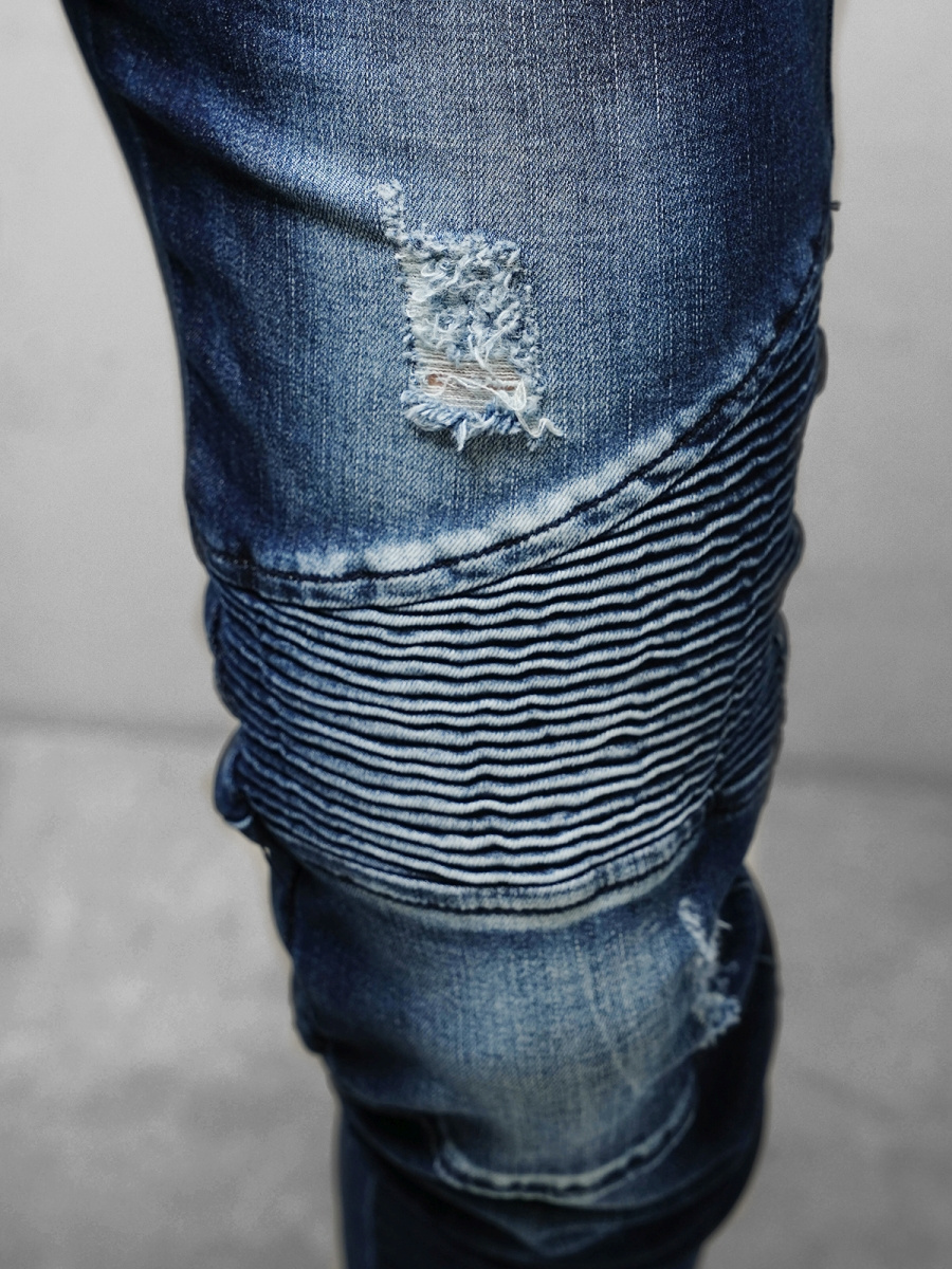 Spodnie mają fason typu slim fit, czyli z wąskimi nogawkami. Oryginalnego wyglądu nadają im przetarcia na nogawkach oraz łączenia materiału. Po bokach oraz z tyłu znajdują się praktyczne kieszenie, do których można schować różne drobne przedmioty. Jeansy zostały wyprodukowane z połączenia bawełny, poliestru, wiskozy oraz elastanu, co sprawia, że są wygodne w noszeniu, ładnie dopasowują się do sylwetki, nie rozciągają się z czasem i nie gniotą.