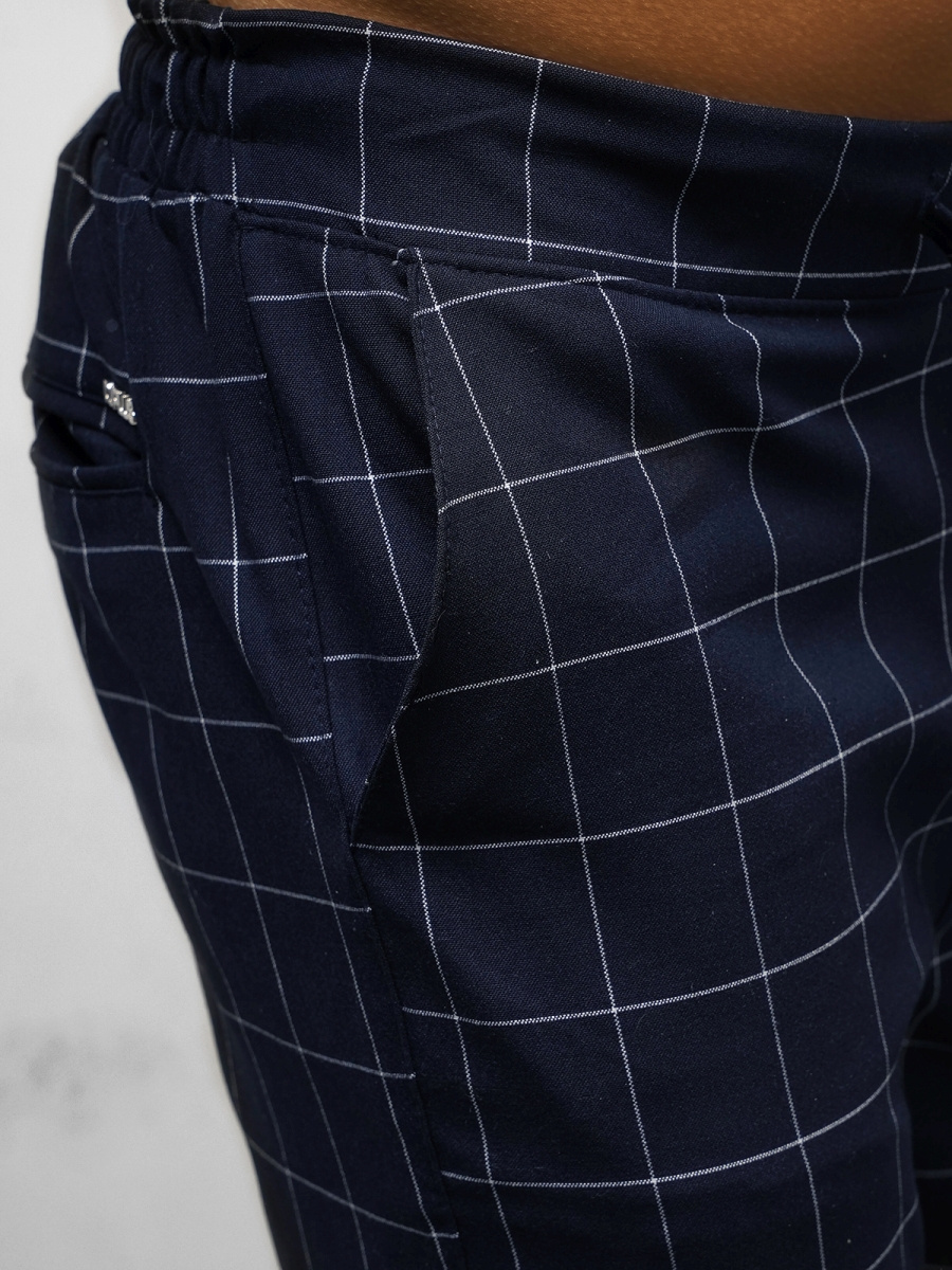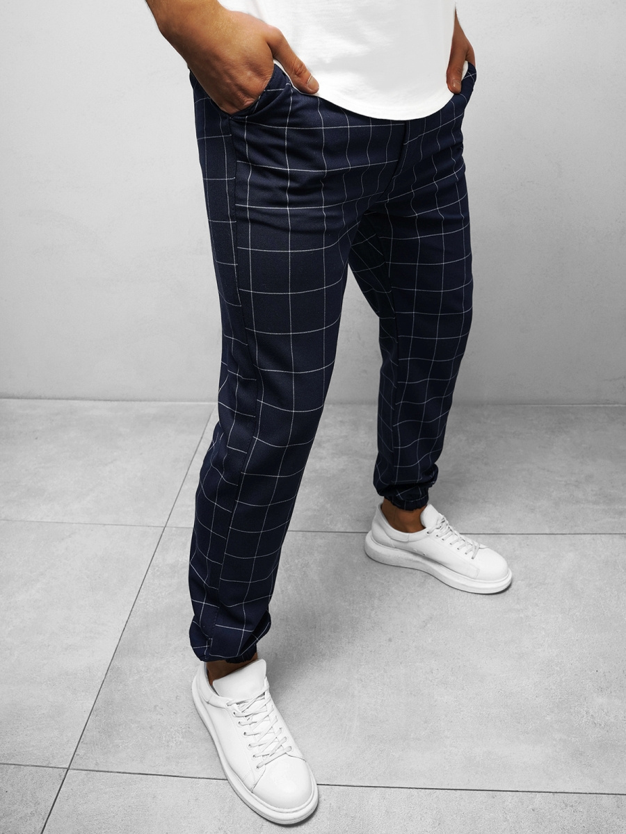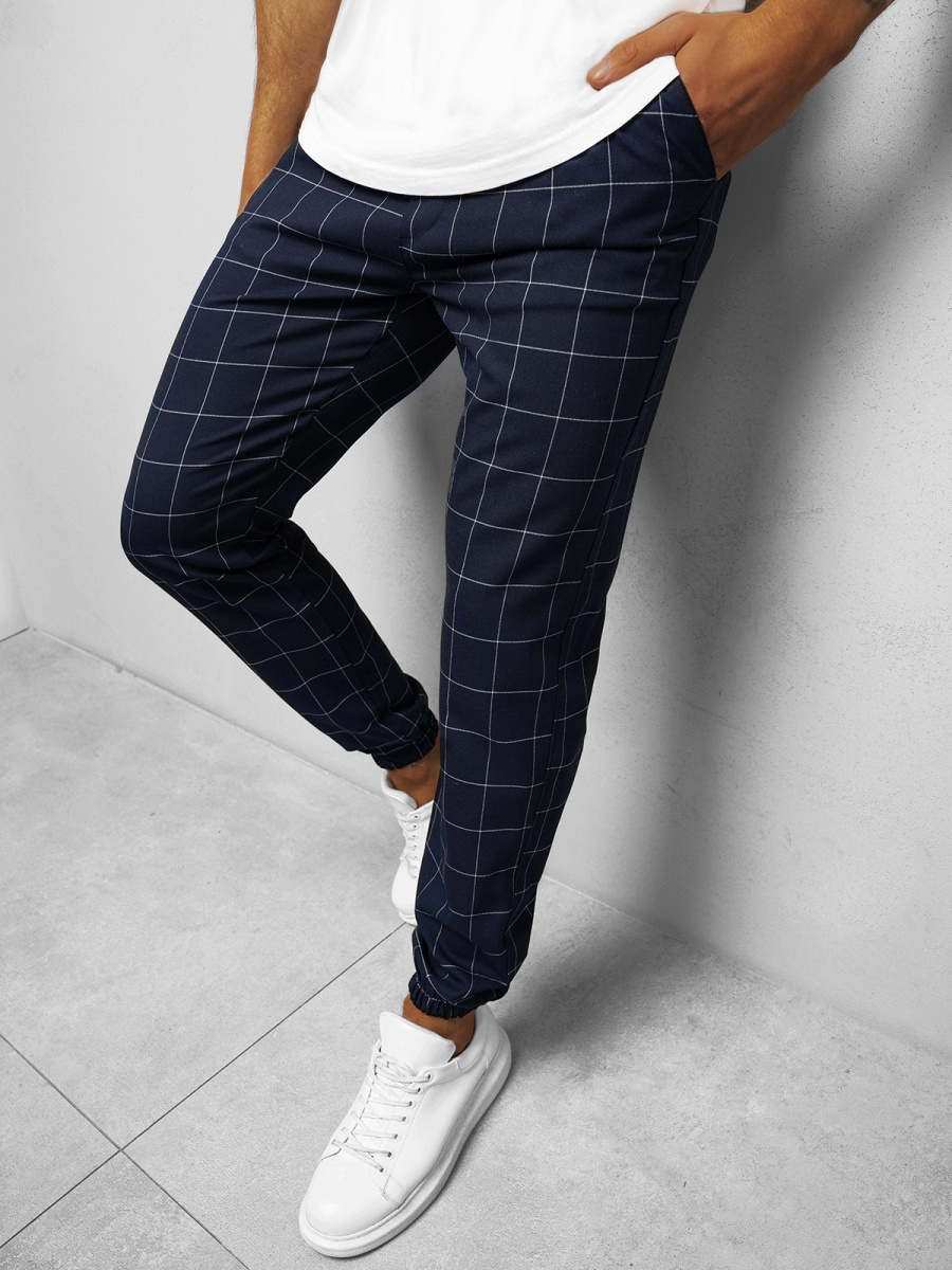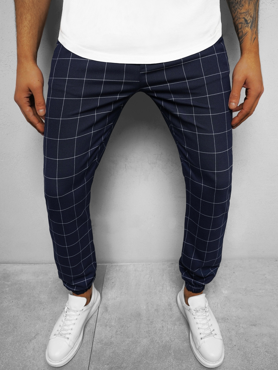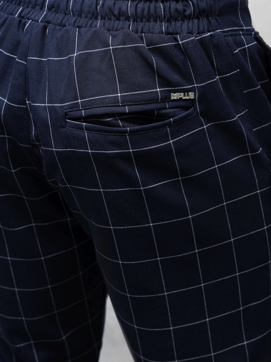 Spodnie pochodzą z najnowszej kolekcji. Ładnie dopasowują się do sylwetki i są wygodne w noszeniu. Spodnie pokrywa uniwersalny, ponadczasowy wzór w kratę, który nigdy nie wychodzi z mody i pasuje każdemu mężczyźnie. Z przodu oraz z tyłu joggerów znajdują się praktyczne kieszenie, do których można schować niezbędne drobiazgi. Pas oraz nogawki spodni zostały wykończone ściągaczami, które nadają im sportowego charakteru.