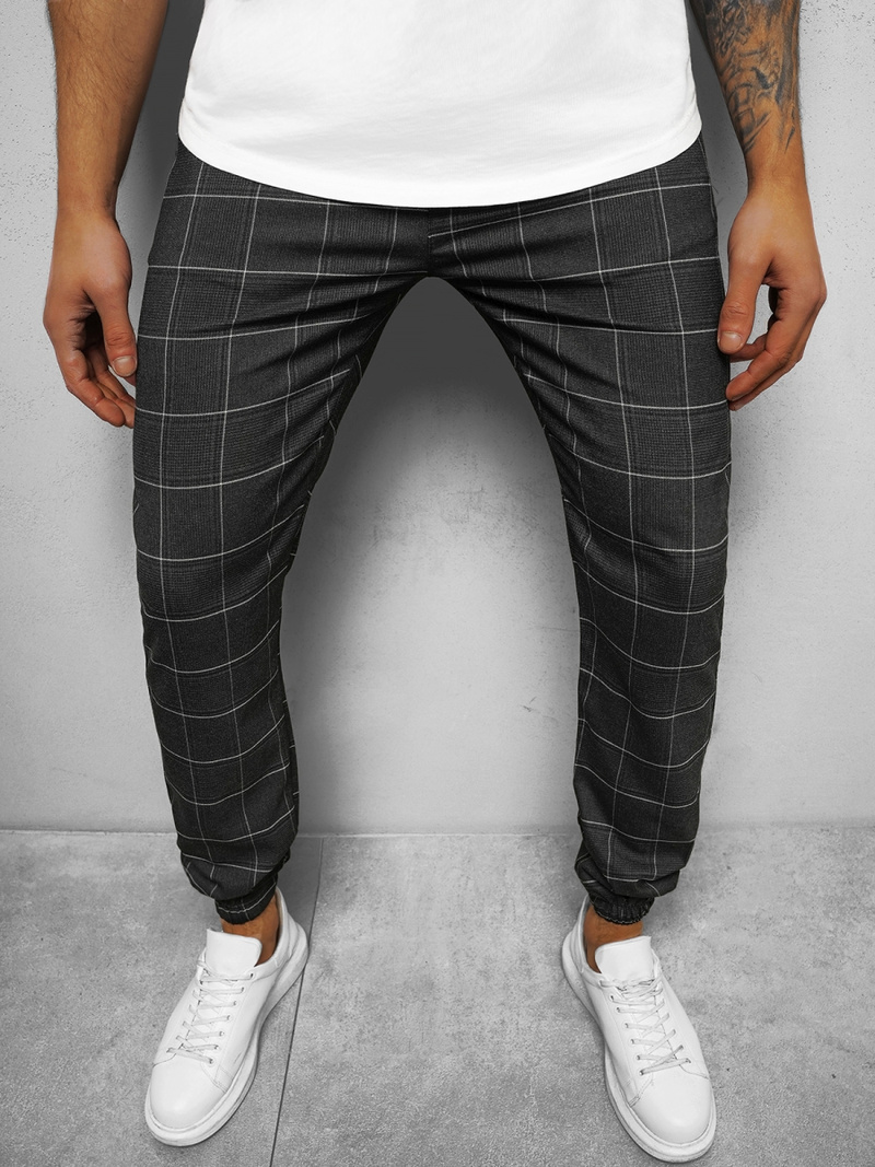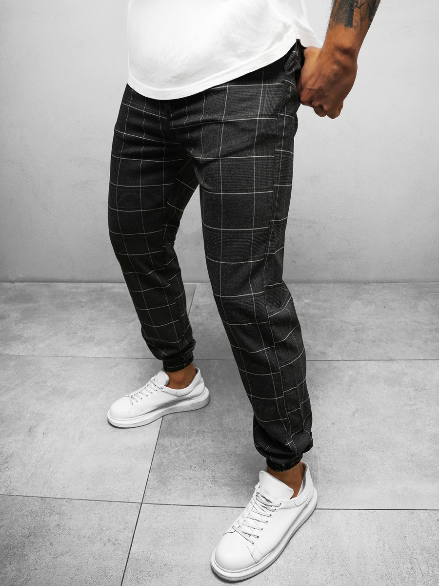 Spodnie pochodzą z najnowszej kolekcji. Ładnie dopasowują się do sylwetki i są wygodne w noszeniu. Spodnie pokrywa uniwersalny, ponadczasowy wzór w kratę, który nigdy nie wychodzi z mody i pasuje każdemu mężczyźnie. Z przodu oraz z tyłu joggerów znajdują się praktyczne kieszenie, do których można schować niezbędne drobiazgi. Pas oraz nogawki spodni zostały wykończone ściągaczami, które nadają im sportowego charakteru.