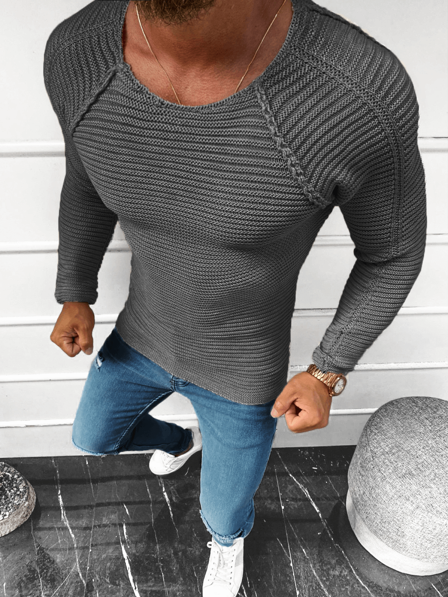 Sweter pokrywa wzór w prążki, dzięki czemu prezentuje się on bardzo efektownie. Posiada klasyczny, okrągły dekolt typu U-neck. Sweter został wyprodukowany z wysokiej jakości bawełny, akrylu oraz wiskozy. Sprawia to, że jest wygodny w noszeniu, przyjemny w dotyku, nie rozciąga się, nie gniecie i ładnie dopasowuje się do sylwetki.