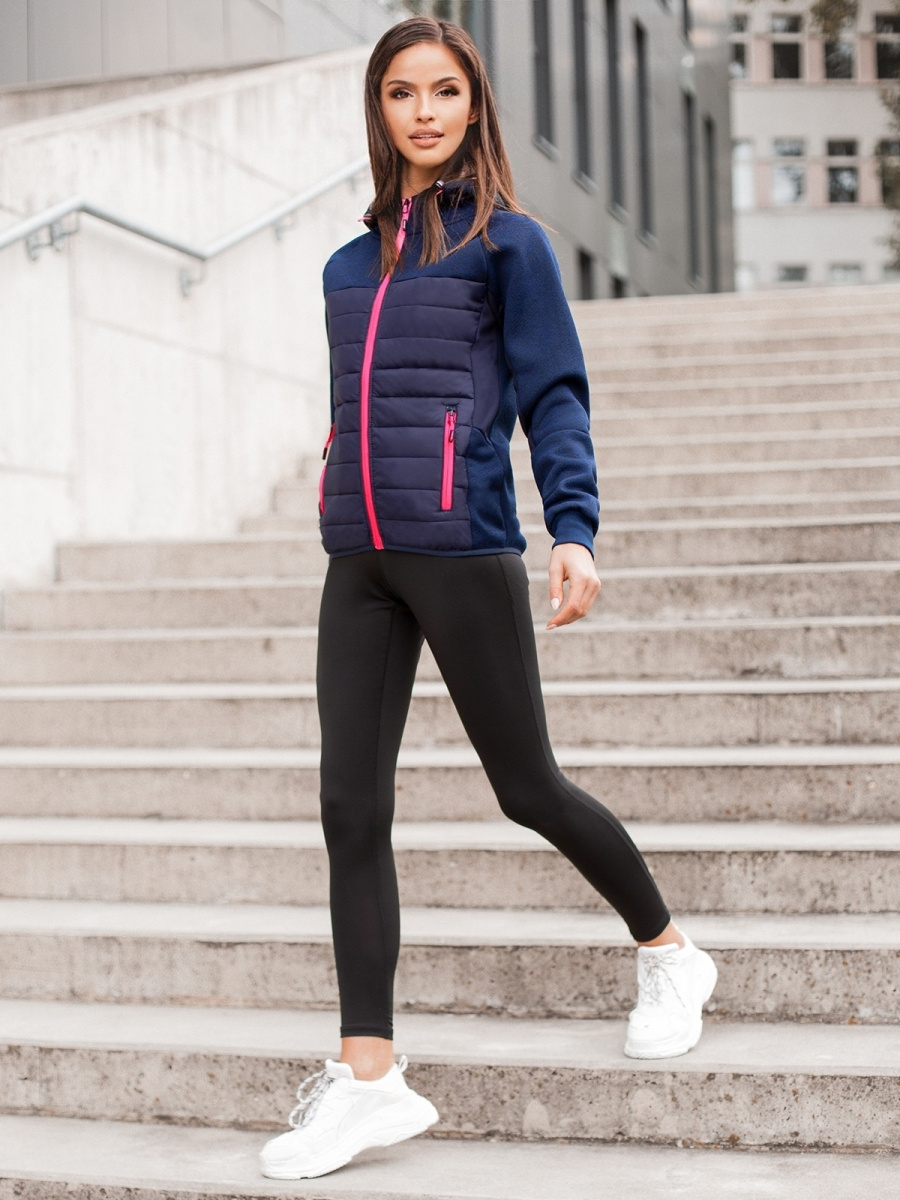 Bluza jest zapinana na zamek błyskawiczny. Posiada kieszenie po bokach, do których schować można klucze, portfel czy telefon. Jej dół i rękawy są wykończone ściągaczami, które nadają całości sportowego charakteru. Na przodzie bluzy znajdują się pikowania. Została ona wykonana w całości z wysokiej jakości poliestru, dzięki czemu ładnie dopasowuje się do sylwetki, nie rozciąga się i nie gniecie.