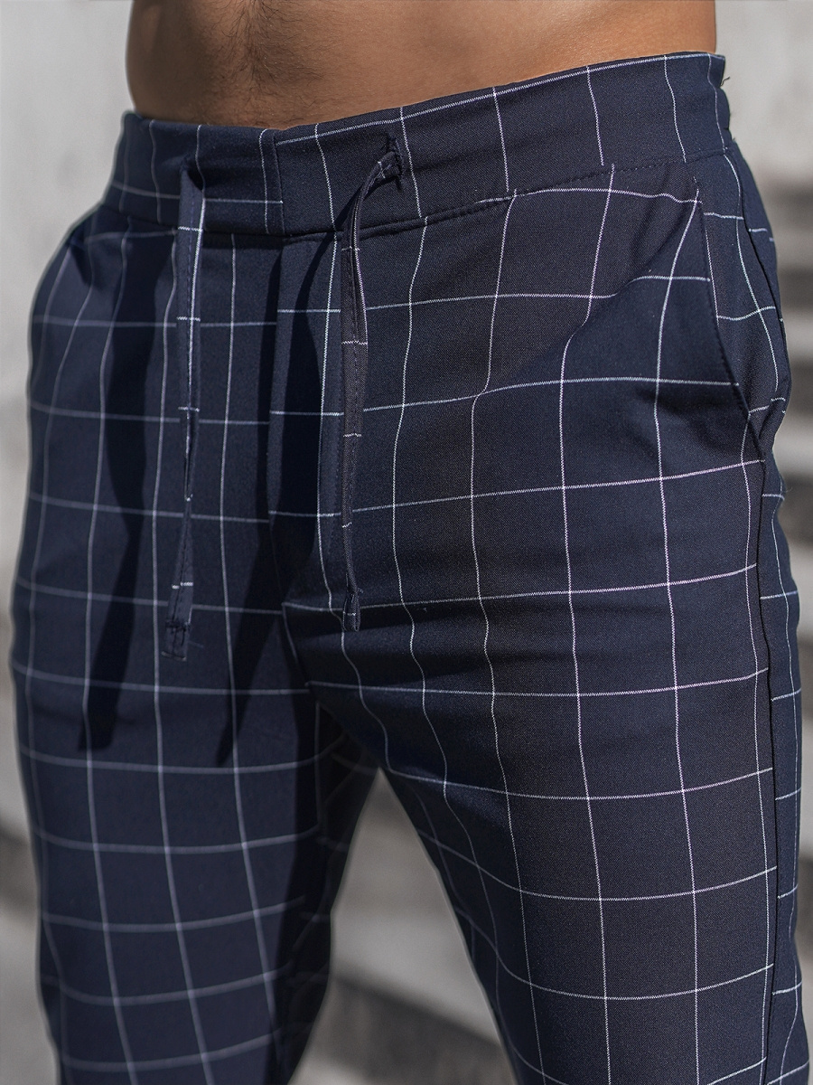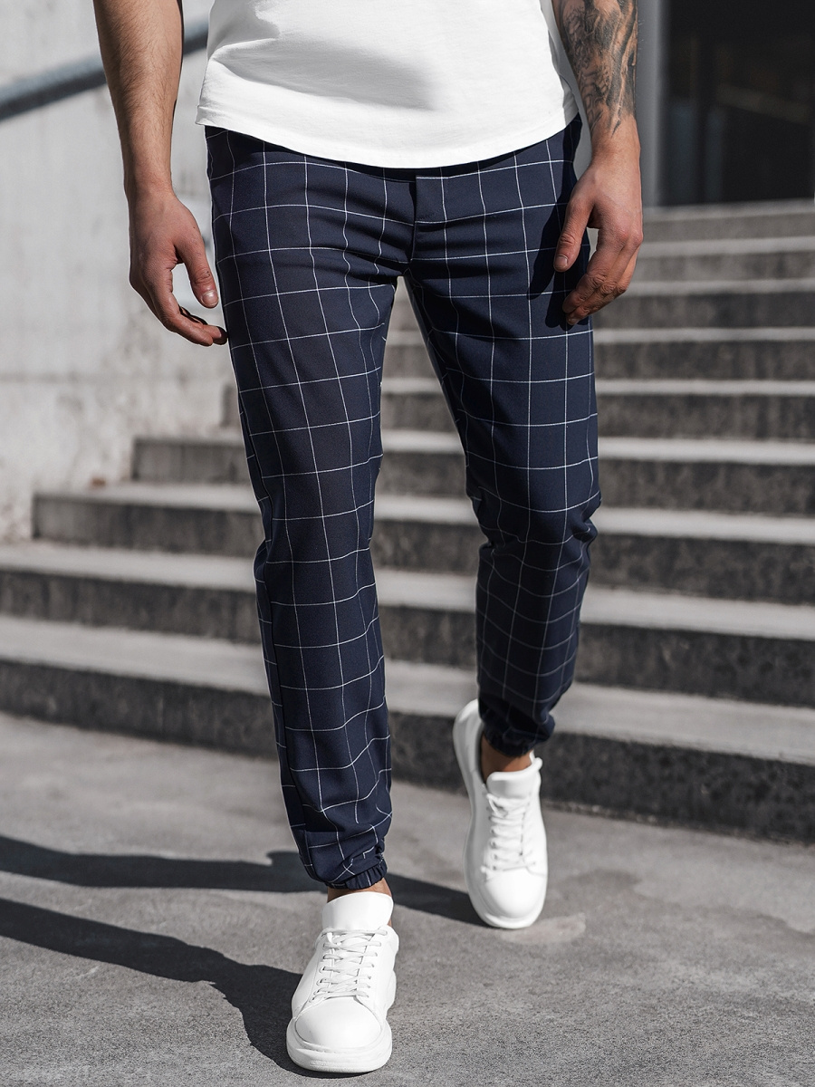Spodnie pochodzą z najnowszej kolekcji. Ładnie dopasowują się do sylwetki i są wygodne w noszeniu. Spodnie pokrywa uniwersalny, ponadczasowy wzór w kratę, który nigdy nie wychodzi z mody i pasuje każdemu mężczyźnie. Z przodu oraz z tyłu joggerów znajdują się praktyczne kieszenie, do których można schować niezbędne drobiazgi. Pas oraz nogawki spodni zostały wykończone ściągaczami, które nadają im sportowego charakteru.