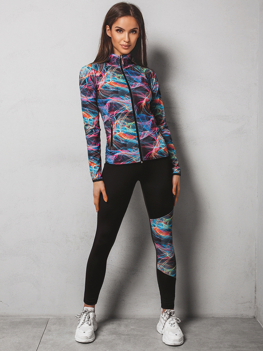 W skład kompletu sportowego wchodzą 3 elementy. Są nimi sportowy stanik podtrzymujący biust podczas aktywności fizycznej, legginsy oraz rozpinana bluza z kieszeniami na zamek błyskawiczny, do których można schować niezbędne drobiazgi, takie jak klucze, portfel czy telefon. Zestaw został wyprodukowany w całości z poliestru. Sprawia to, że jest bardzo wygodny w noszeniu, nie krępuje ruchów w czasie uprawiania sportu i szybko schnie.