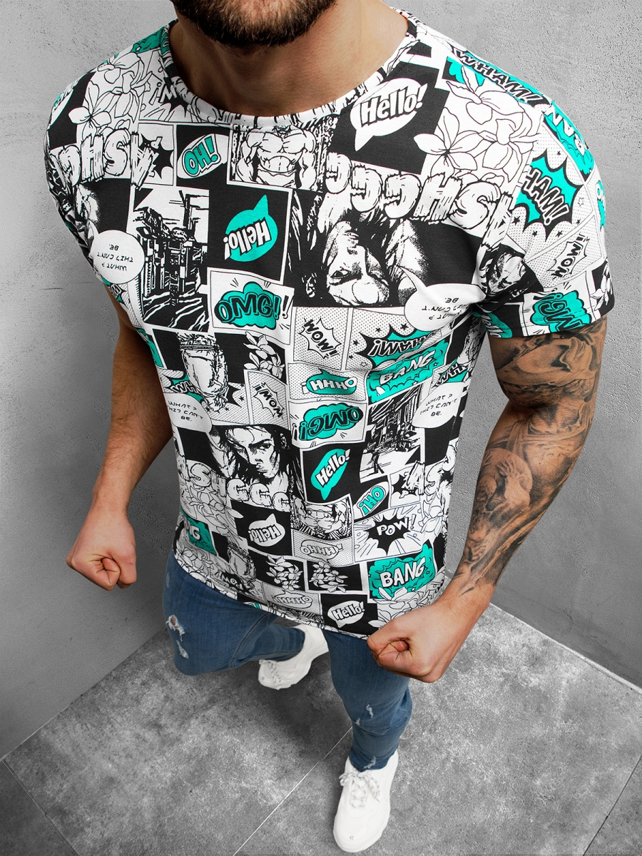 Koszulka pochodzi z najnowszej kolekcji. Ma okrągły dekolt typu U-neck, który dobrze pasuje do każdej sylwetki. Z przodu oraz z tyłu t-shirtu znajduje się oryginalny, kolorowy nadruk. Koszulka została wykonana z wysokiej jakości bawełny, co sprawia, że jest przewiewna, przyjemna w dotyku, wygodna w noszeniu i odporna na uszkodzenia oraz zagniecenia.