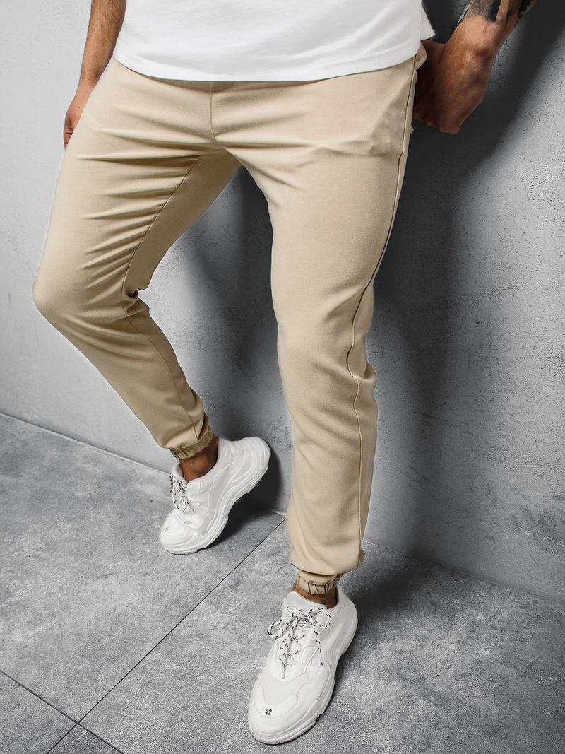 Spodnie męskie chino jogger materiałowe beżowe OZONEE DJ/5539