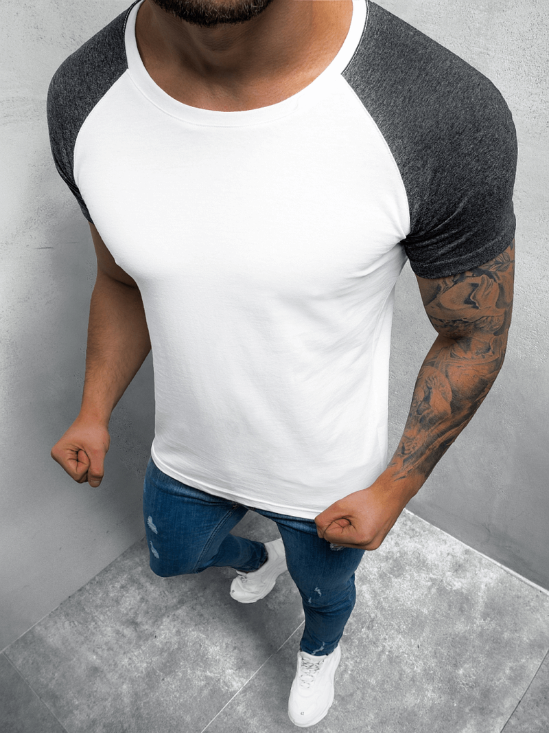 Koszulka pochodzi z najnowszej kolekcji. Ma ona klasyczny, okrągły dekolt typu u — neck oraz rękawy w kontrastowym kolorze. T-shirt został wykonany w całości z wysokiej jakości bawełny, dzięki czemu jest wygodny w noszeniu, przyjemny w dotyku, przewiewny oraz odporny na uszkodzenia i zagniecenia.