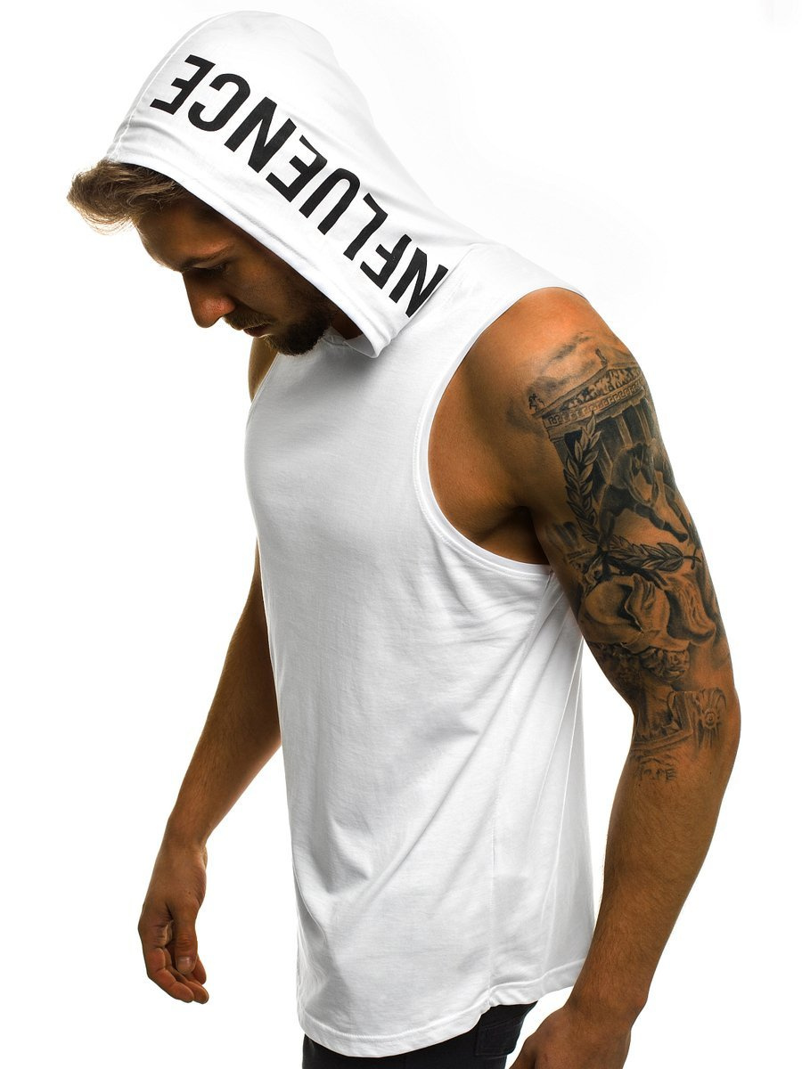 Koszulka została wykonana w 100% z bawełny – to materiał bardzo przyjemny dla skóry, wygodny w noszeniu, przyjemny i nie wywołujący reakcji alergicznych czy podrażnień. T-shirt posiada oryginalny fason odsłaniający ramiona, dzięki czemu doskonale sprawdzi się u osób, chcących wyeksponować swoją muskulaturę. Na uwagę zasługuje również praktyczny kaptur z efektownym nadrukiem.