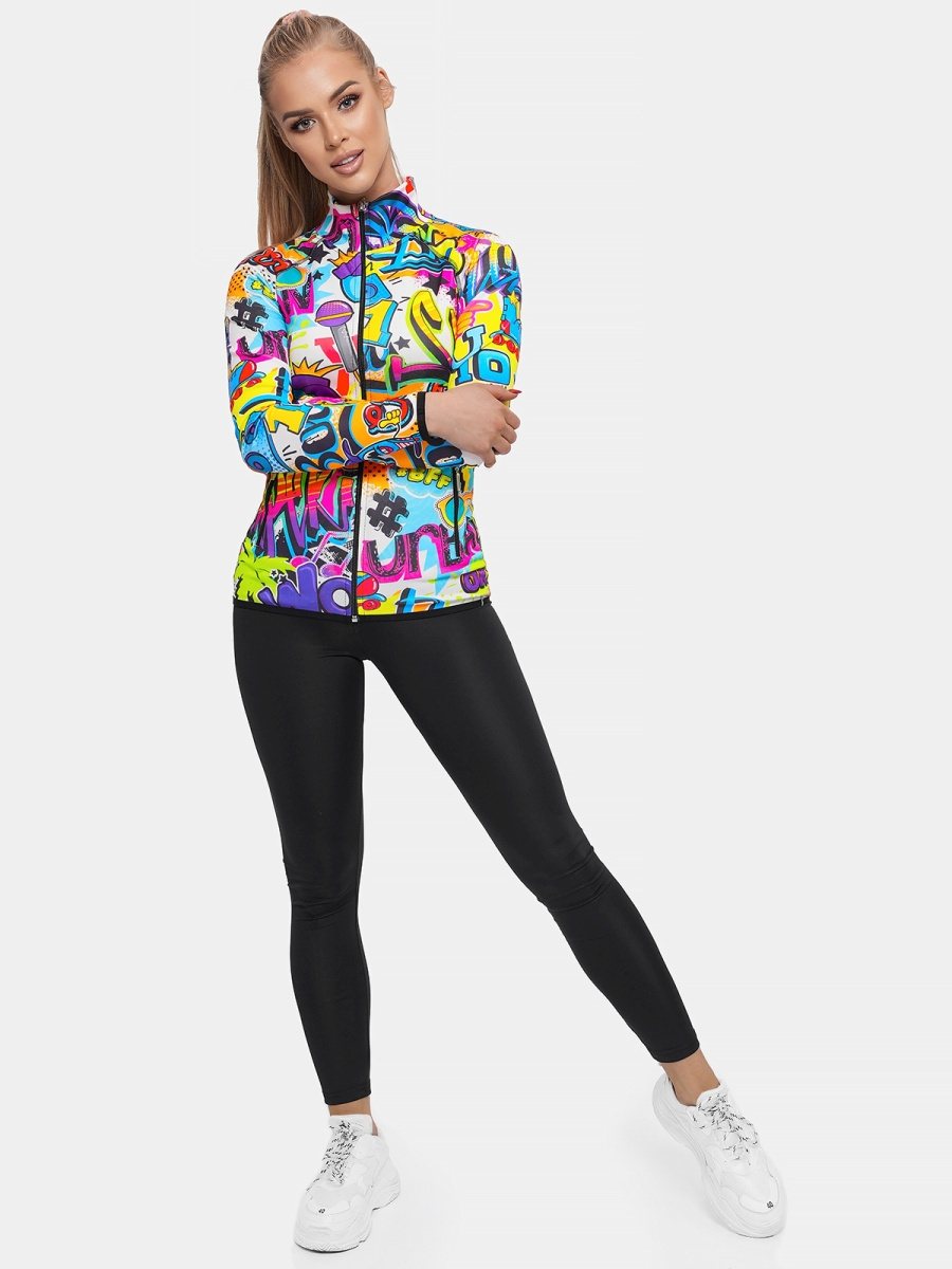 - Rozpinaną bluzę z kieszeniami po bokach i wzorzystym nadrukiem Legginsy