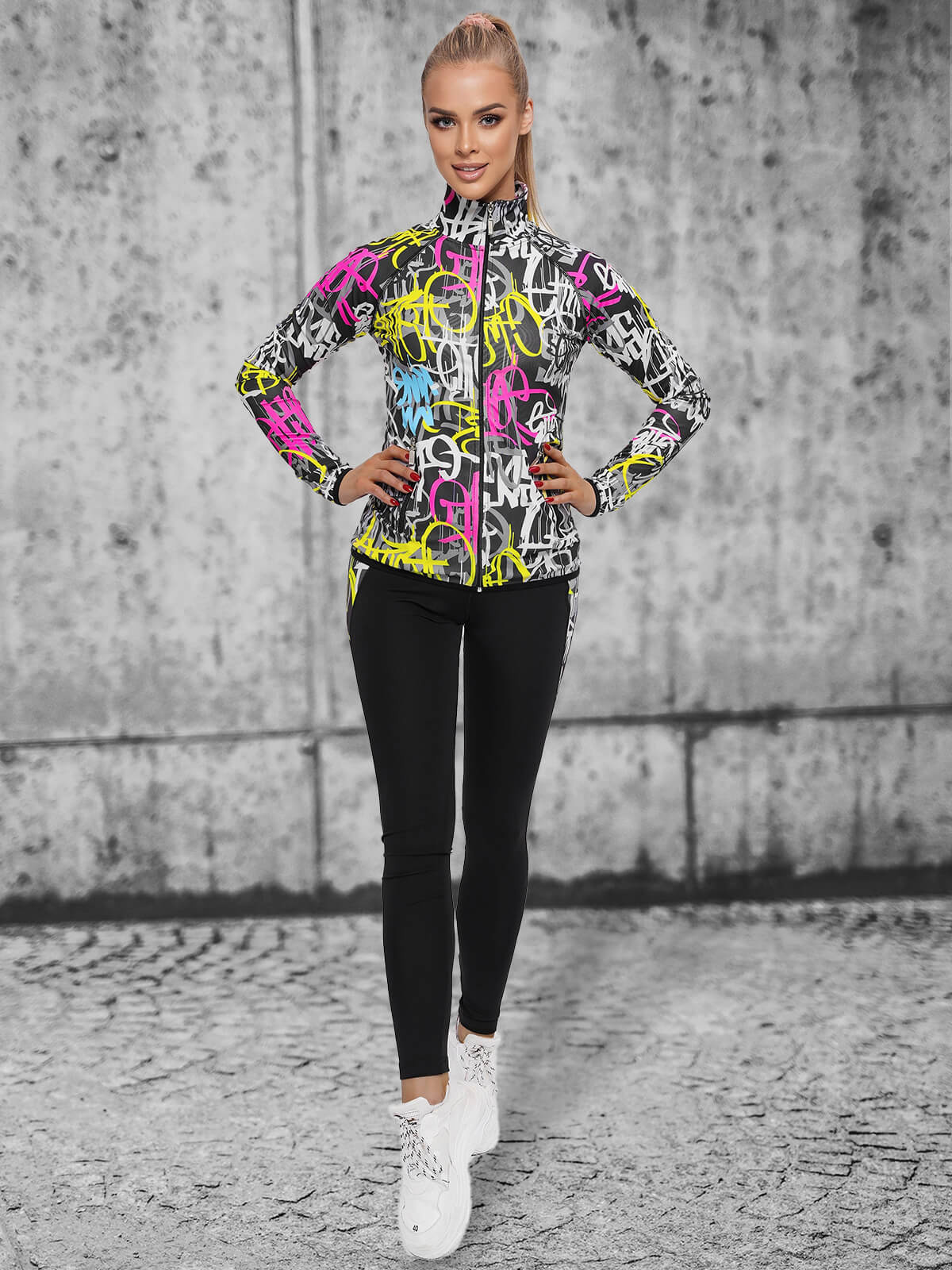 W skład kompletu dresowego wchodzą 2 elementy: legginsy z nadrukiem z boku oraz rozpinana bluza z kieszeniami po bokach oraz designerskim wzorem. Zestaw został wykonany z wysokiej jakości poliestru z domieszką elastanu, dzięki czemu bardzo dobrze dopasowuje się do sylwetki, nie krępuje ruchów, nie rozciąga się z czasem i szybko schnie.