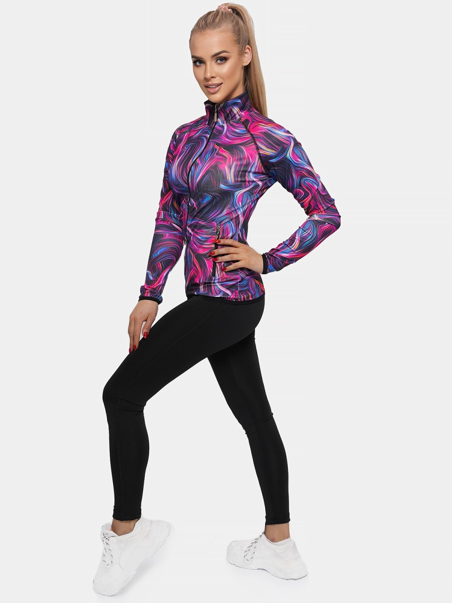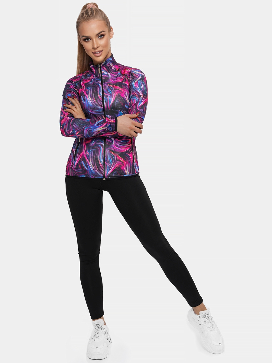 W skład kompletu wchodzi rozpinana bluza z kieszeniami po bokach oraz kontrastowym nadrukiem i legginsy. Został on wykonany z wysokiej jakości poliestru z domieszką elastanu. Sprawia to, że bardzo ładnie dopasowuje się do sylwetki, jest wygodny w noszeniu, nie gniecie się i szybko schnie.