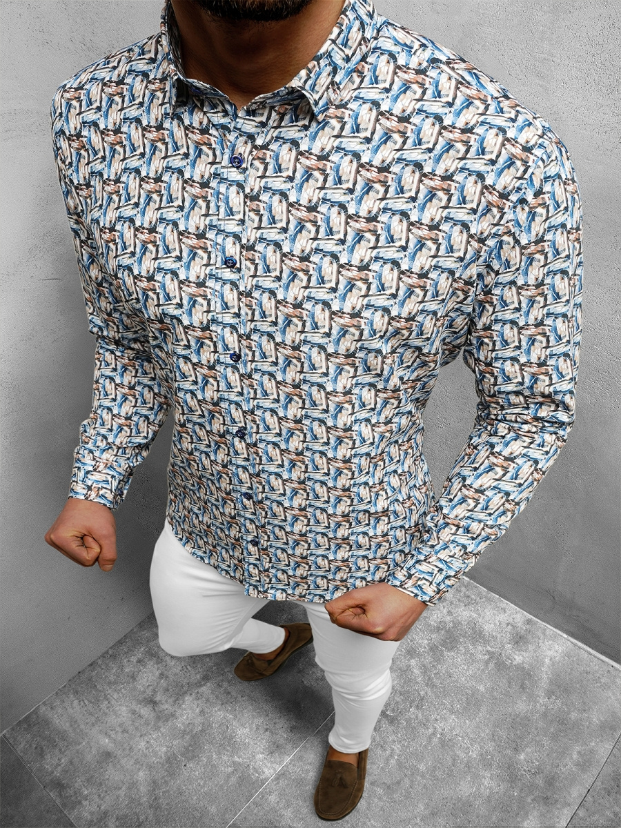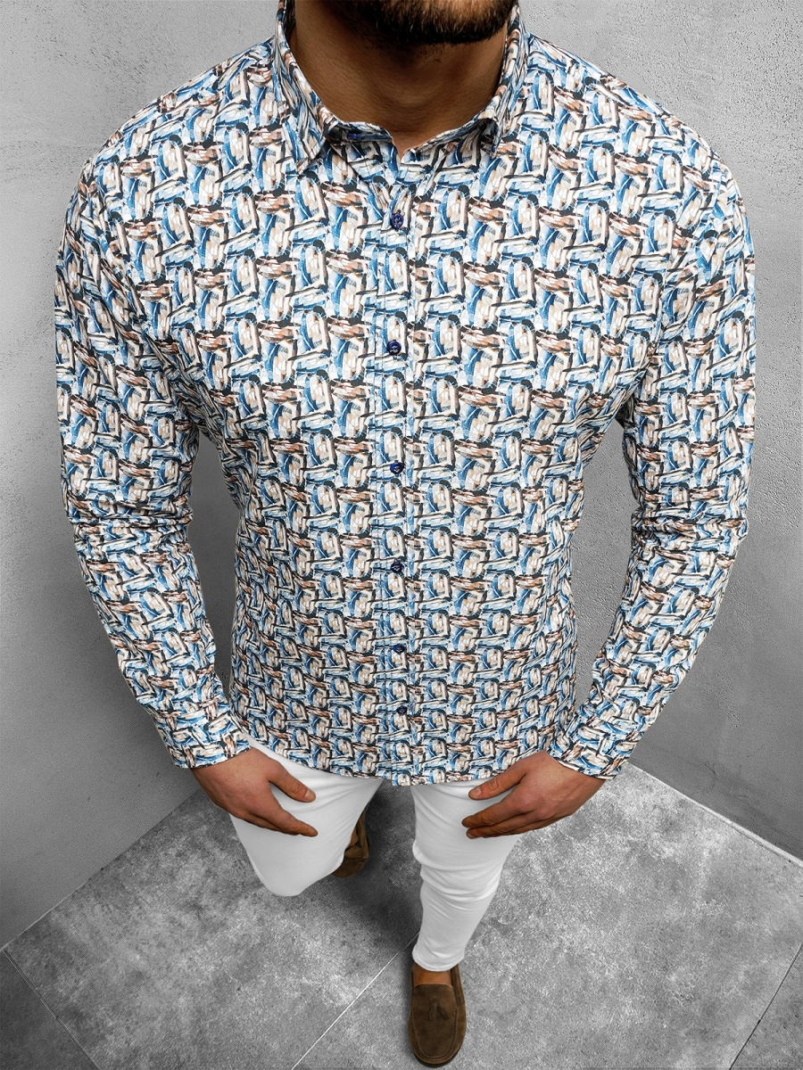 Wzorzysta koszula to ciekawy sposób na ożywienie eleganckiej, męskiej stylizacji. Z powodzeniem można ją założyć na randkę, wesele czy wyjście do klubu. Koszula będzie bardzo dobrze pasowała do innych męskich ubrań dostępnych w asortymencie naszego sklepu internetowego. Można ją zestawić na przykład z marynarką i materiałowymi spodniami. Równie dobrze będzie ona wyglądała razem ze swetrem i jeansami.