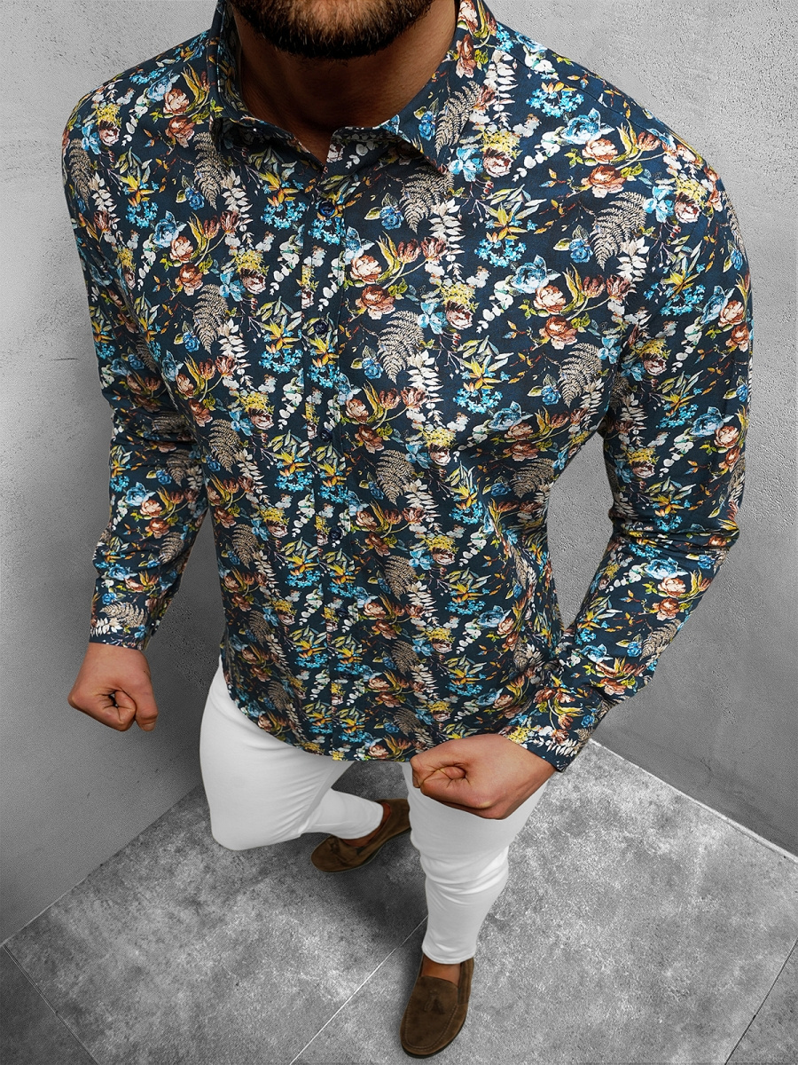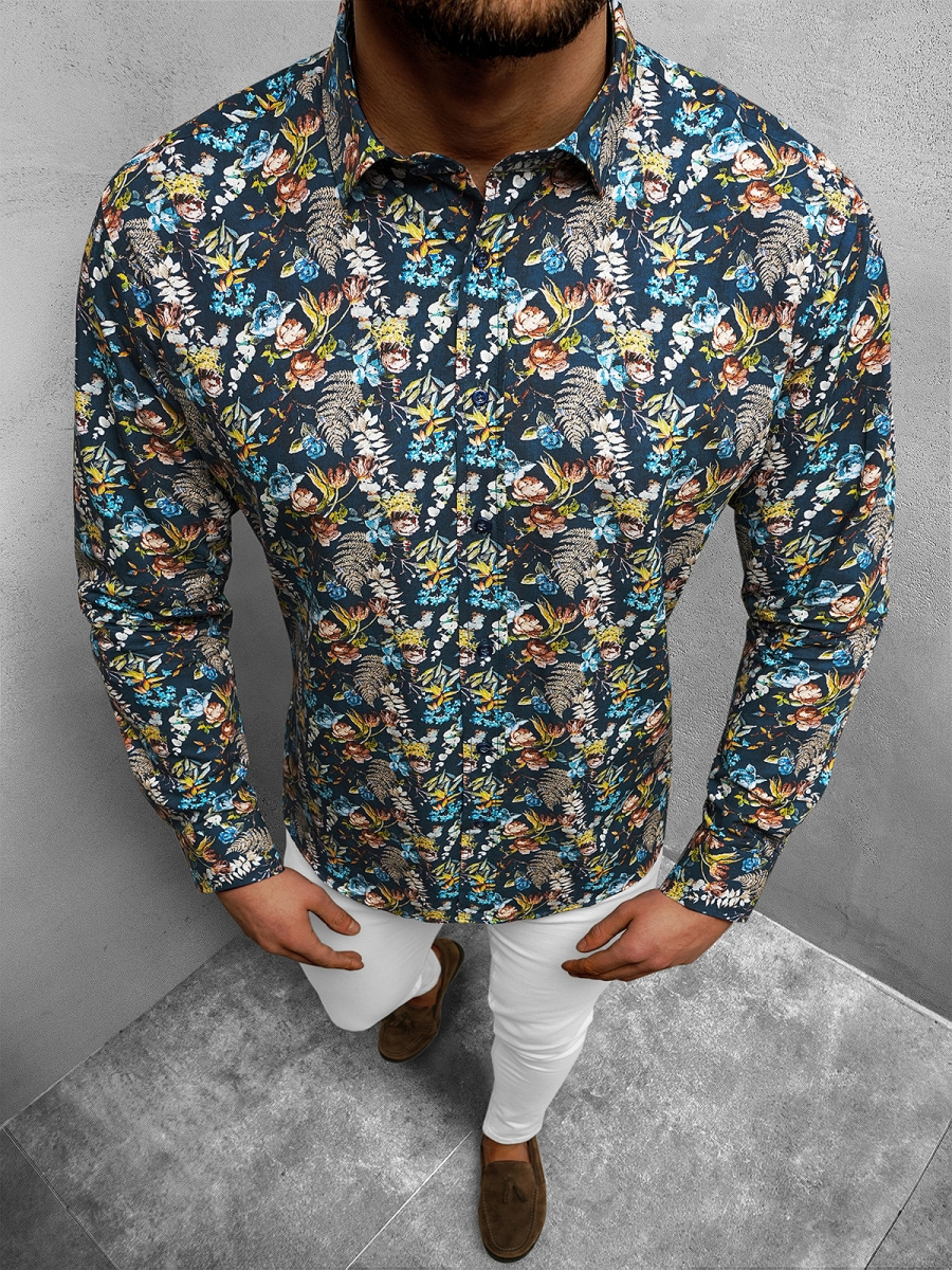 Koszula pochodzi z najnowszej kolekcji. Ma fason typu slim fit, czyli dopasowany do sylwetki. Koszula jest zapinana na guziki i posiada kołnierzyk typu kent. Zdobi ją kolorowy, modny wzór. Koszula została wykonana w całości z bawełny, dzięki czemu jest przyjemna w dotyku, wygodna w noszeniu oraz przewiewna.