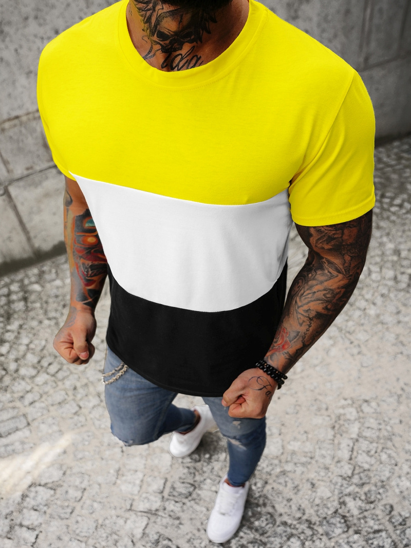 Koszulka pochodzi z nowej kolekcji naszego sklepu internetowego. Ma klasyczny, okrągły dekolt typu U-neck. Oryginalnego wyglądu nadają jej kontrastowe łączenia materiałów. T-shirt został wykonany z bawełny i poliestru, dzięki czemu ładnie dopasowuje się do sylwetki, jest wygodny w noszeniu, przyjemny w dotyku i odporny na uszkodzenia oraz zagniecenia.