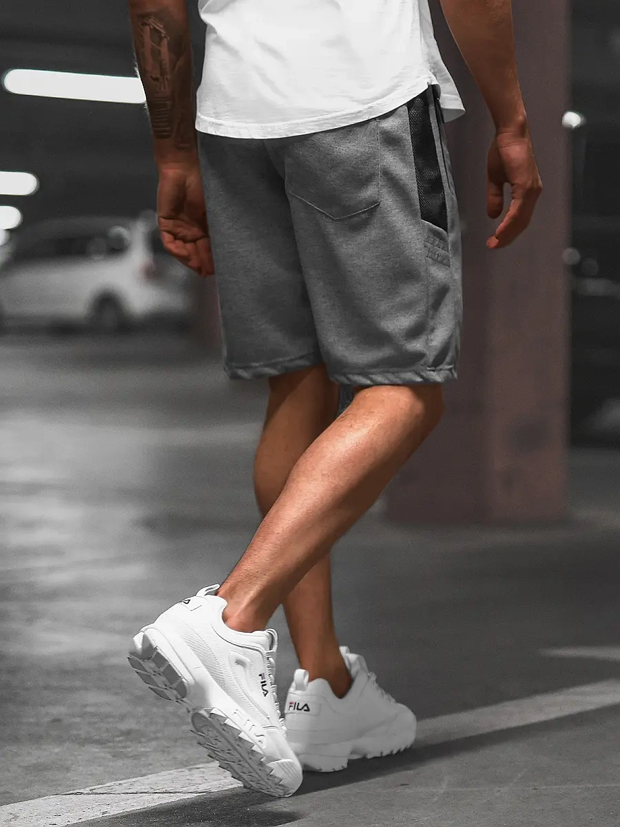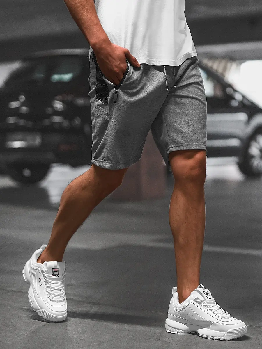 Spodenki pochodzą z najnowszej kolekcji. Posiadają pas ze ściągaczem, który skutecznie chroni je przed przekręcaniem podczas noszenia. Spodenki mają kieszenie po bokach na zamek błyskawiczny oraz kieszonkę z tyłu. Kontrastowe wstawki nadają im oryginalnego wyglądu. Spodenki zostały wykonane z połączenia włókna poliestrowego oraz poliestru, dzięki czemu ładnie dopasowują się do sylwetki.