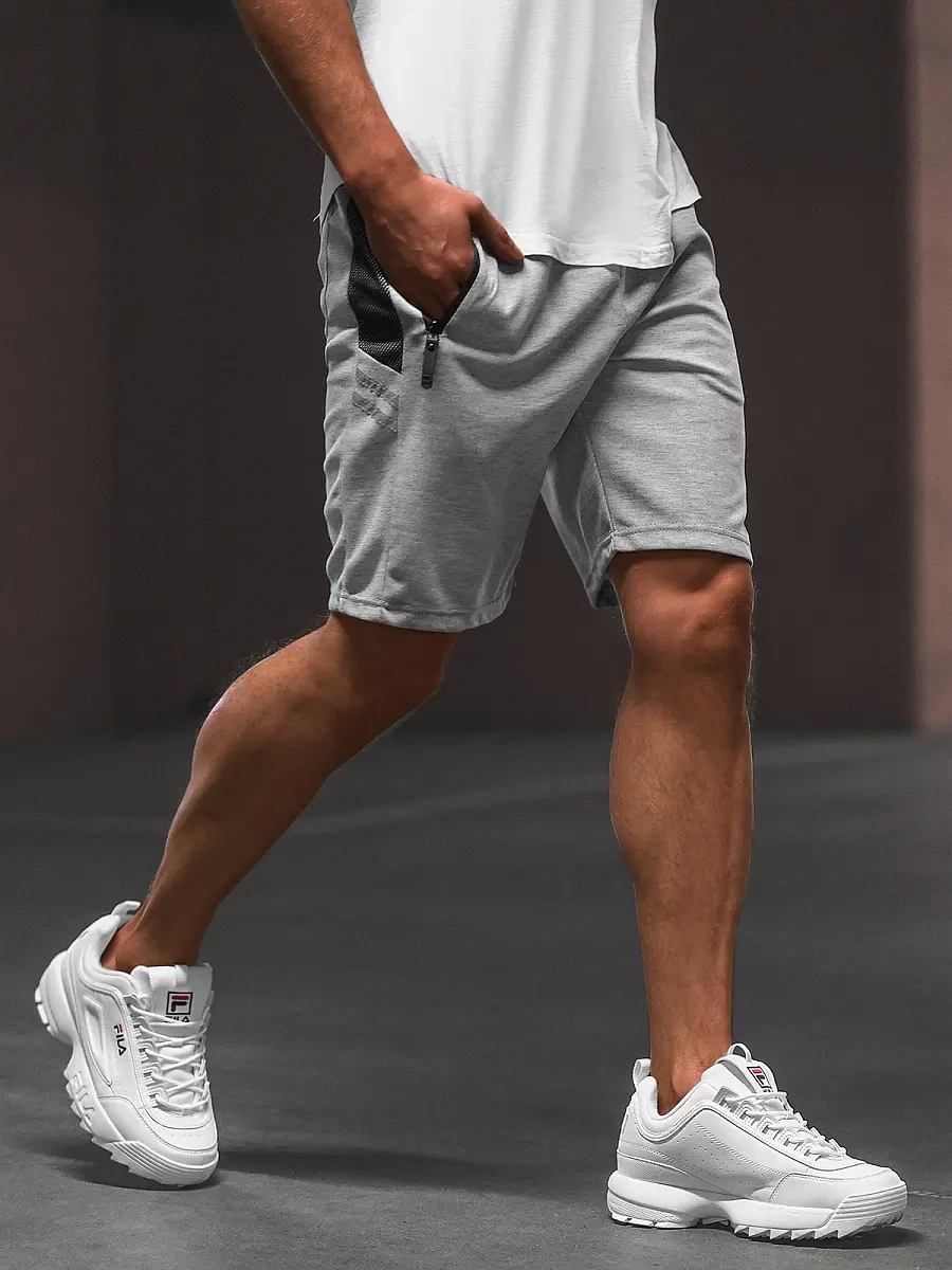 Spodenki pochodzą z najnowszej kolekcji. Posiadają pas ze ściągaczem, który skutecznie chroni je przed przekręcaniem podczas noszenia. Spodenki mają kieszenie po bokach na zamek błyskawiczny oraz kieszonkę z tyłu. Kontrastowe wstawki nadają im oryginalnego wyglądu. Spodenki zostały wykonane z połączenia włókna poliestrowego oraz poliestru, dzięki czemu ładnie dopasowują się do sylwetki.