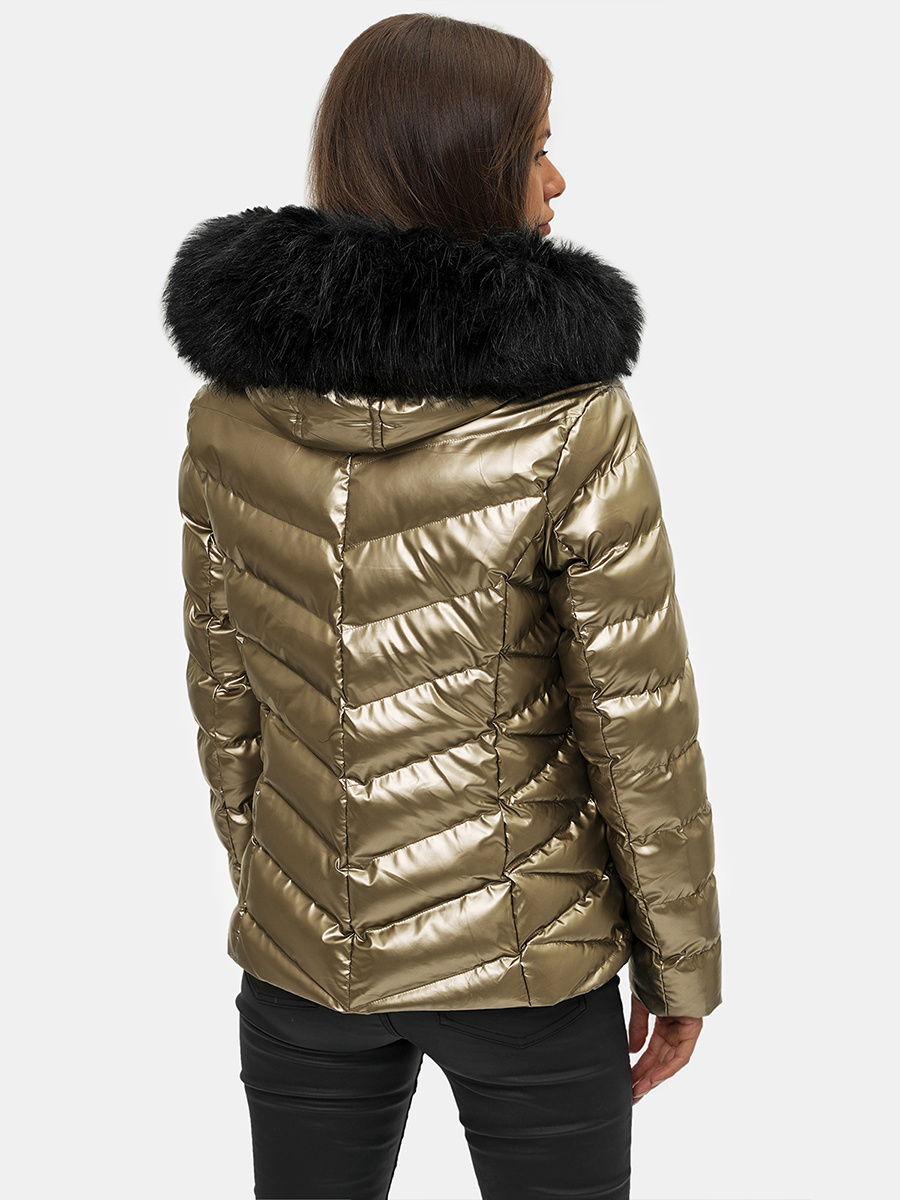 Kurtka pochodzi z nowej kolekcji. Pokrywające ją pikowania nadają jej oryginalnego charakteru. Kurtka ma praktyczny, odpinany kaptur z futerkiem, który nie tylko prezentuje się efektownie, lecz również skutecznie chroni przed chłodem, wiatrem i opadami atmosferycznymi. Po bokach kurtki znajdują się kieszenie na zamek błyskawiczny, do których można schować drobiazgi, takie jak klucze, telefon czy portfel. Została ona wykonana z wysokiej jakości poliestru, dzięki czemu ładnie dopasowuje się do sylwetki i szybko schnie.