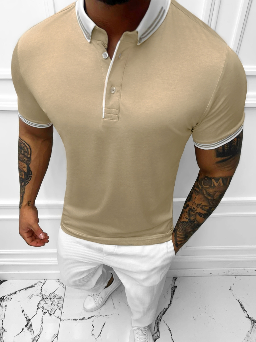 Koszulka polo męska beżowa OZONEE E/1040/1