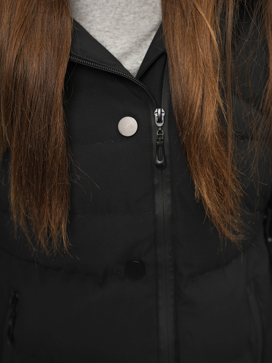 Kurtka pochodzi z najnowszej kolekcji. Została wykonana z wysokiej jakości poliestru, co sprawia, że szybko schnie i ładnie dopasowuje się do sylwetki. Kurtka jest zapinana na zamek błyskawiczny i pokryta pikowaniami. Ma kaptur z odpinanym futerkiem, który nie tylko elegancko się prezentuje, lecz również skutecznie chroni przed zimnem, deszczem i śniegiem. Rękawy kurtki zostały zakończone ściągaczami zabezpieczającymi przed chłodnymi podmuchami wiatru. Po jej bokach znajdują się kieszenie zapinane na zamek błyskawiczny, do których można schować klucze czy telefon.