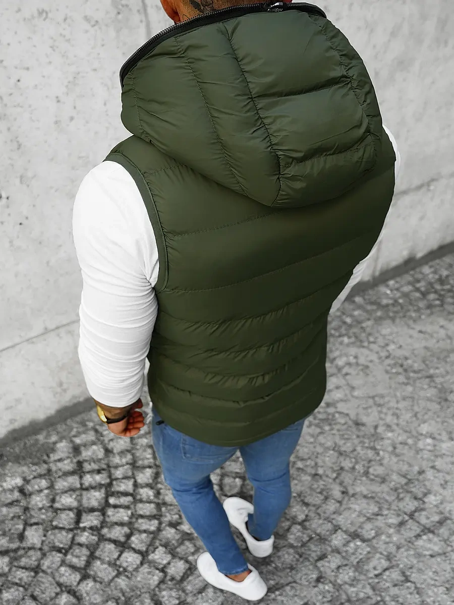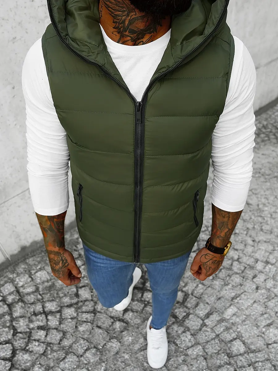 Kamizelka pochodzi z najnowszej kolekcji. Jest zapinana na zamek błyskawiczny i posiada kaptur, który skutecznie chroni przed chłodem i opadami atmosferycznymi. Kamizelkę pokrywają pikowania nadające oryginalnego wyglądu. Po bokach znajdują się kieszenie na zamek, a we wnętrzu — dodatkowa kieszeń. Kamizelka została wyprodukowana z nylonu, a jej podszewka — z poliestru. Sprawia to, że ładnie dopasowuje się ona do sylwetki i szybko schnie.