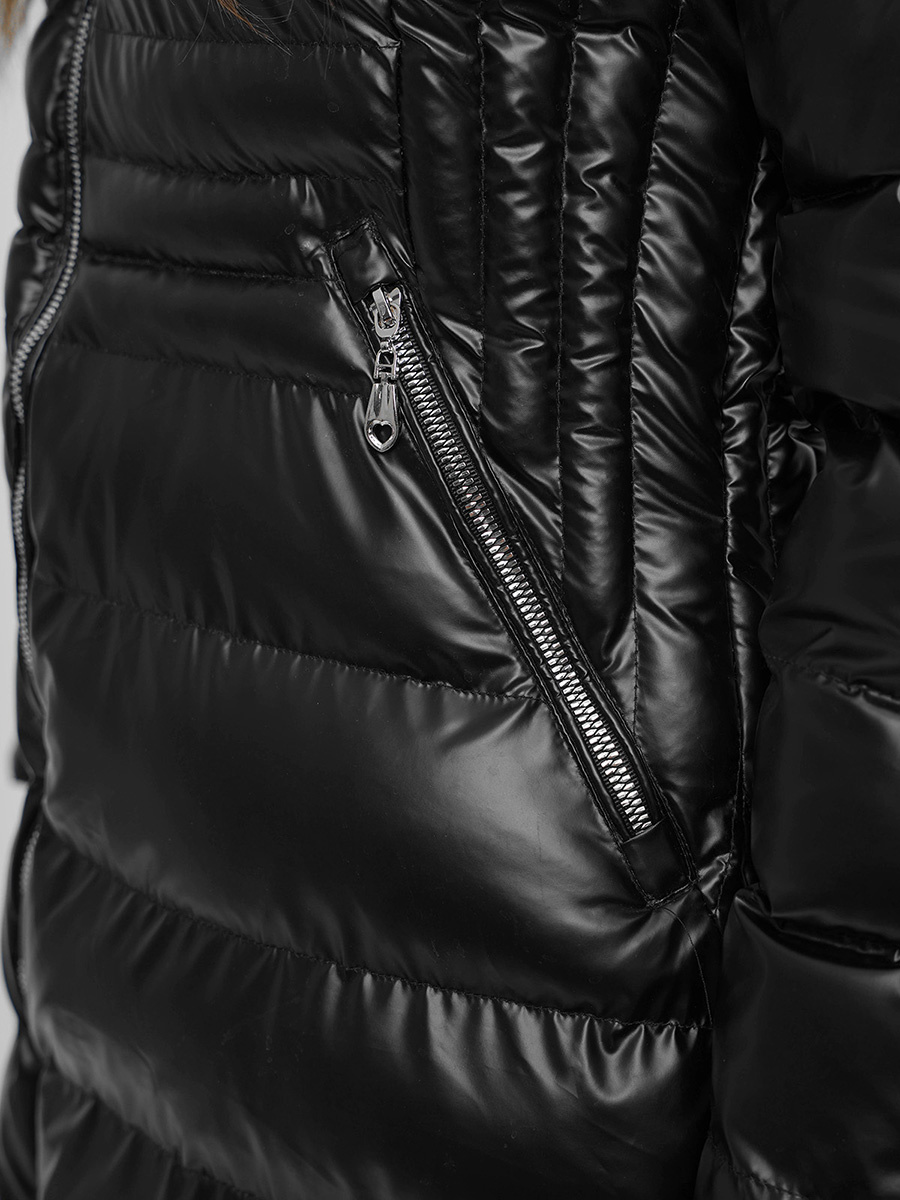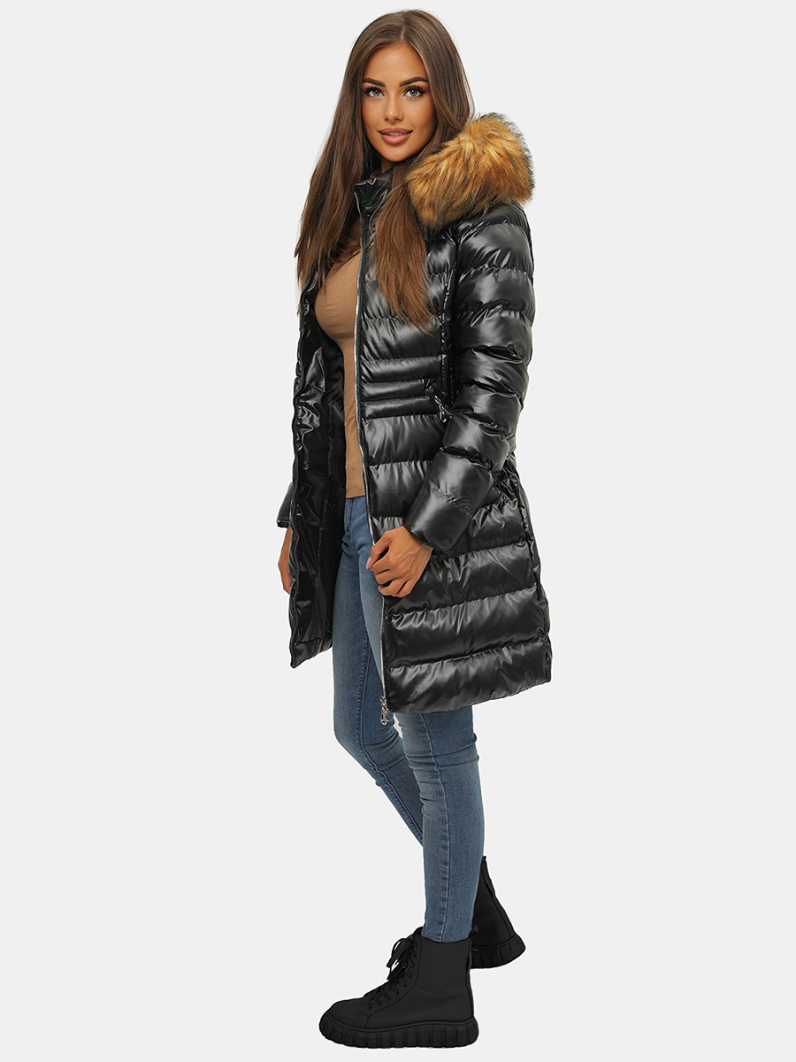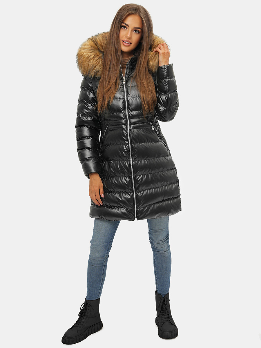 Kurtka zimowa damska z futerkiem czarno-brązowa OZONEE JS/M777/392B