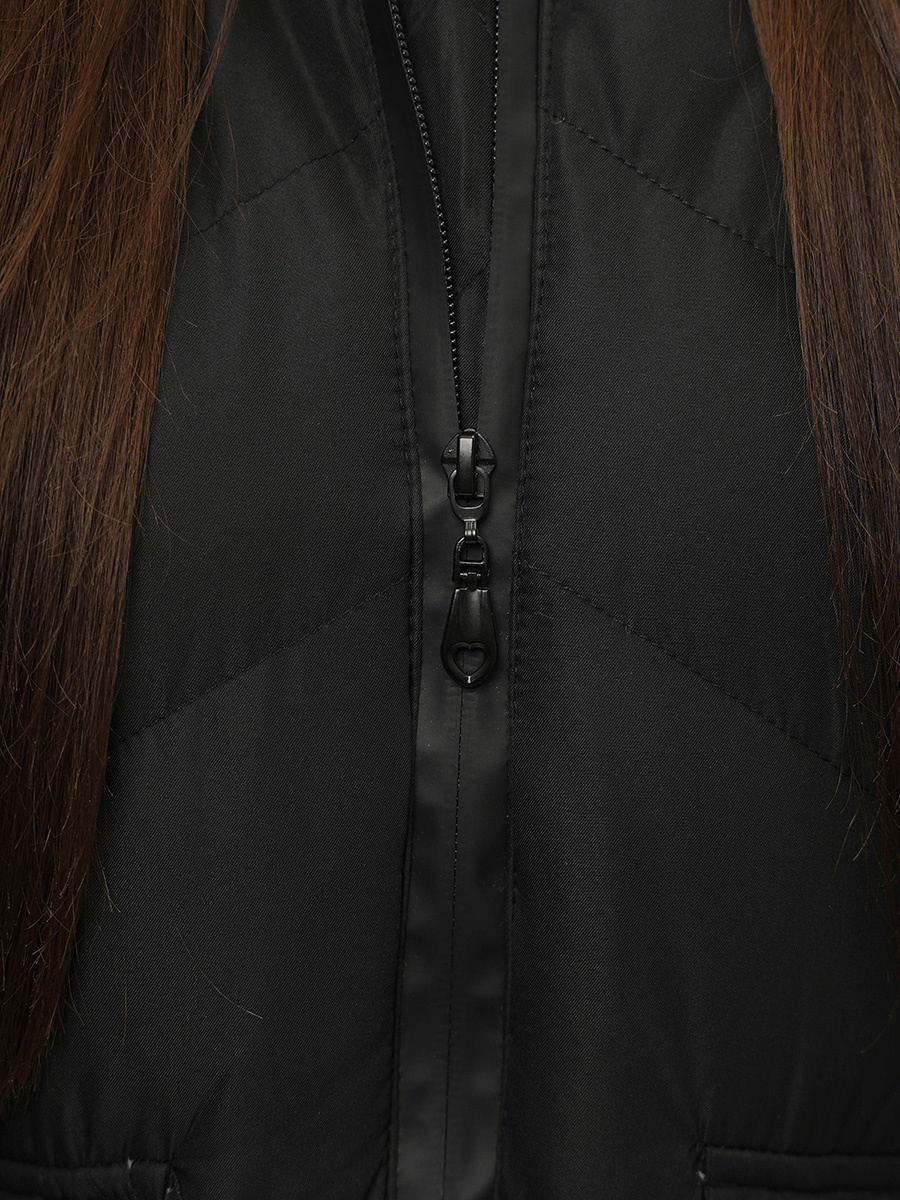 Płaszcz pochodzi z nowej kolekcji. Jest zapinany na zamek błyskawiczny i posiada praktyczny kaptur chroniący przed chłodem, wiatrem, deszczem oraz śniegiem. Płaszcz ma również wysoki kołnierz typu komin. Pokrywające go pikowania nadają mu stylowego charakteru. Rękawy płaszcza zostały wykończone ściągaczami zabezpieczającymi przed zimnymi podmuchami wiatru. Po bokach oraz z przodu znajdują się kieszenie, do których można schować niezbędne drobiazgi, takie jak portfel, klucze czy telefon. Płaszcz został wykonany w całości z poliestru.