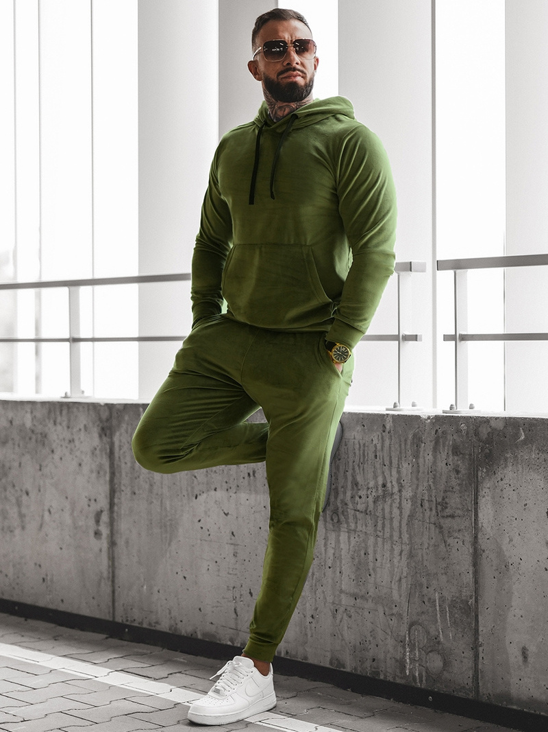 Zestaw męski składa się ze spodni z kieszeniami po bokach oraz wkładanej przez głowę bluzy z kapturem i kieszenią typu kangurka. Został on wyprodukowany z wysokiej jakości poliestru z domieszką elastanu, dzięki czemu ładnie dopasowuje się do sylwetki i jest wygodny w noszeniu.