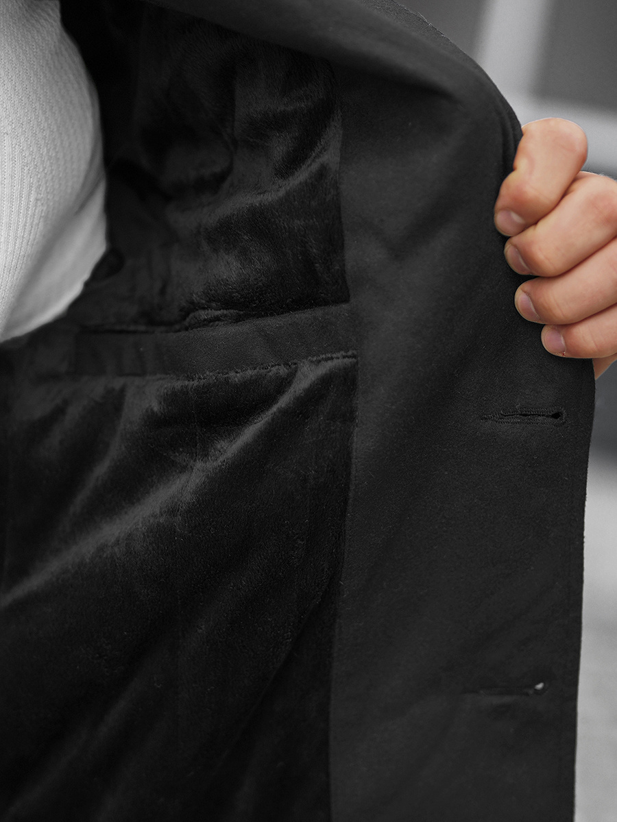Płaszcz został wykonany z wysokiej jakości poliestru, dzięki czemu ładnie dopasowuje się do sylwetki. Jest zapinany na 1 rząd guzików. Płaszcz posiada odpinany kołnierz ze stójką. Ma ocieplenie od wewnątrz, które skutecznie chroni przed zmarznięciem w chłodne dni. Płaszcz posiada 2 kieszenie po bokach, 1 w środku i 1 na przodzie na zamek błyskawiczny, do których można schować drobiazgi, takie jak klucze, portfel czy telefon.