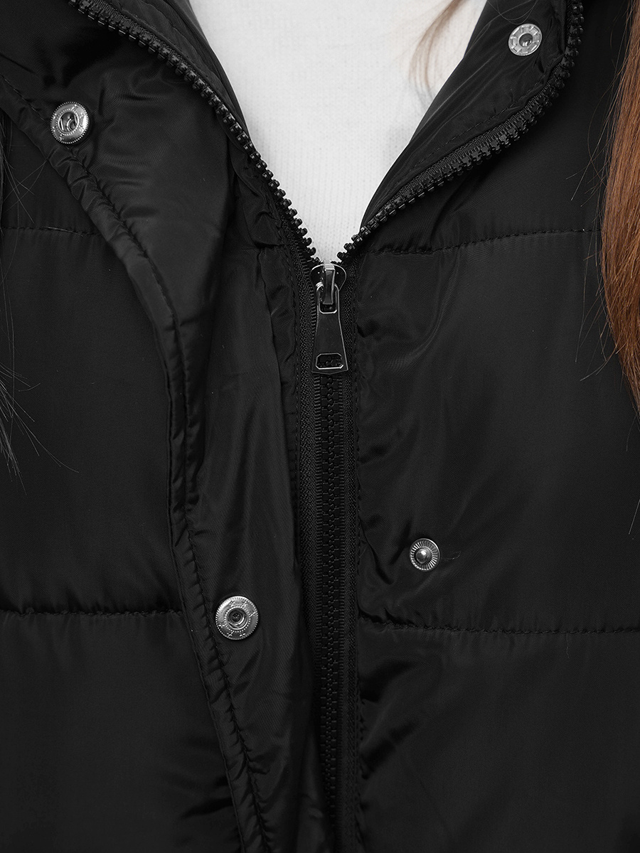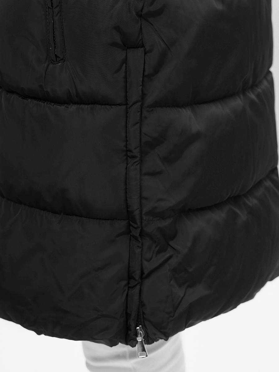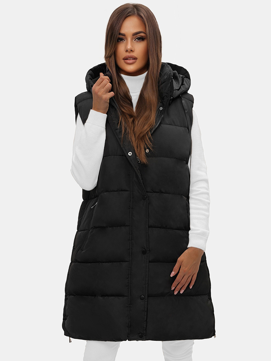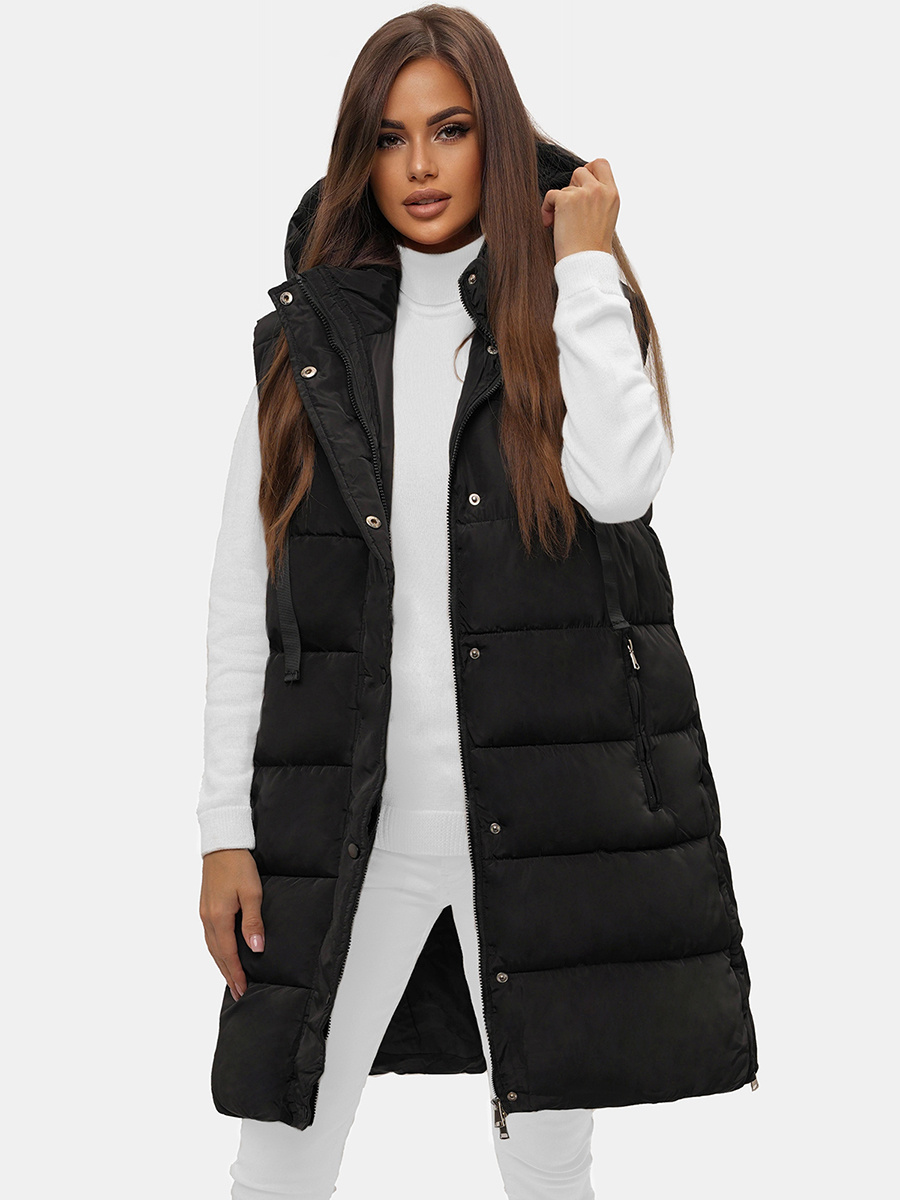 Kamizelka damska długa pikowana z kapturem czarna OZONEE O/81276